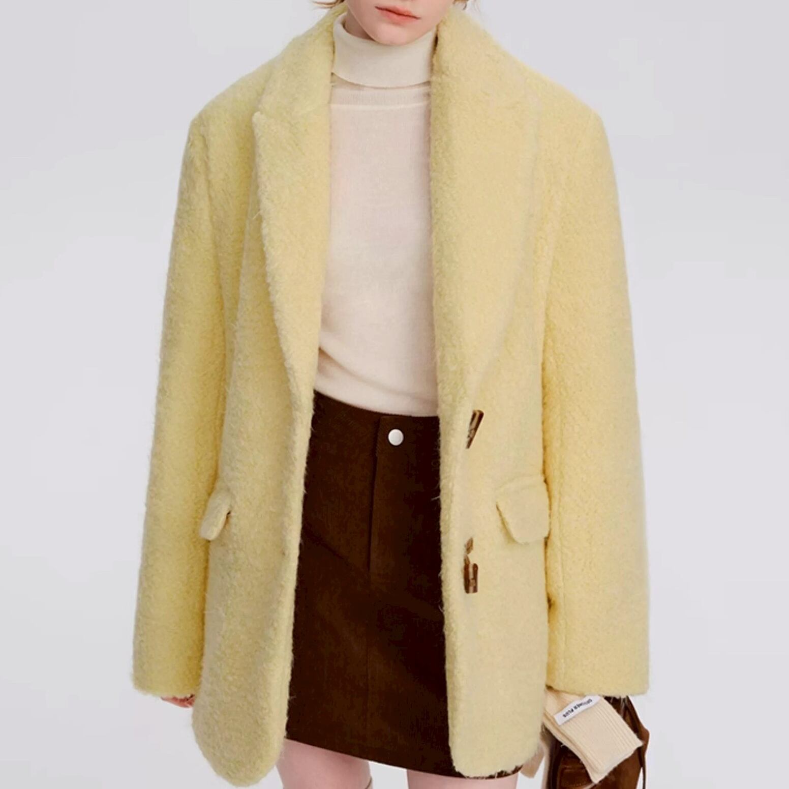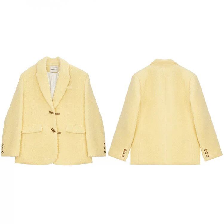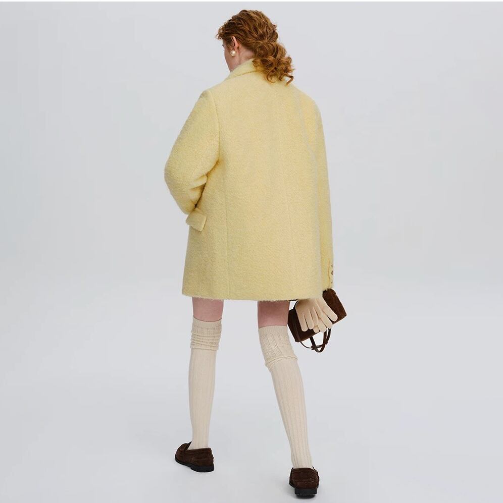 ヒップ丈でスタイルアップ効果があり、バランスの取れた着こなしに。 シングルブレストのデザインが、洗練された印象を与えます。 ポケットがアクセントとなり、カジュアルながらも上品さを演出。 ■サイズ (cm) S / 肩幅:49 胸囲:110 着丈:73 袖丈:62 M / 肩幅:50 胸囲:114 着丈:74 袖丈:63 L / 肩幅:51 胸囲:118 着丈:75 袖丈:64 ※サイズ表記につき、約1~3cmの誤差がある場合がございます。 ■カラー イエロー ■素材 ウール:59% ナイロン:12% ポリエステル:29% ◼お届けについて ご決済から発送まで1~3週間前後のお時間をいただいております。 (※商品の状況によっては、3週間以上かかる場合もございます。) ◼注意事項 ・タイミングによっては 商品在庫切れにより 注文キャンセルとさせていただく恐れもございますので、予めご了承くださいませ。 ・こちらは輸入品となります。日本製とは検品基準が異なる為、 新品未使用品でもごくわずかな汚れや ほつれがある場合もございます。 ・仕入れ工場を変えることがあるため、記載サイズと若干異なる場合がございます。 ・商品の色味は、お手持ちのスマートフォンの画面によって実物と若干異なる 場合がございます。 ・イメージ違いやサイズ交換等、お客さまご都合による交換、返品は対応出来かねます。 ———————————— ご注文前にご確認ください →https://official.lhery.com/about ————————————