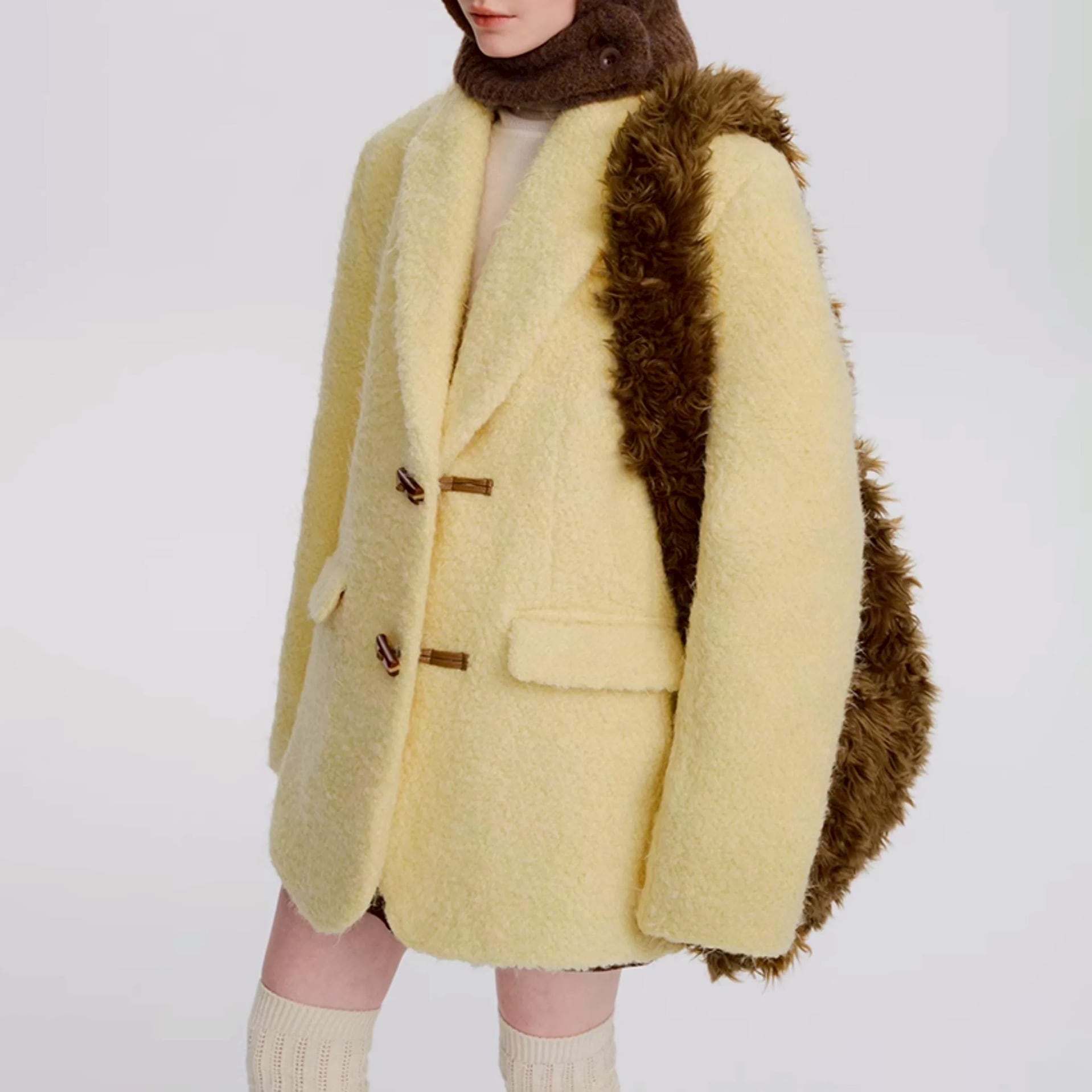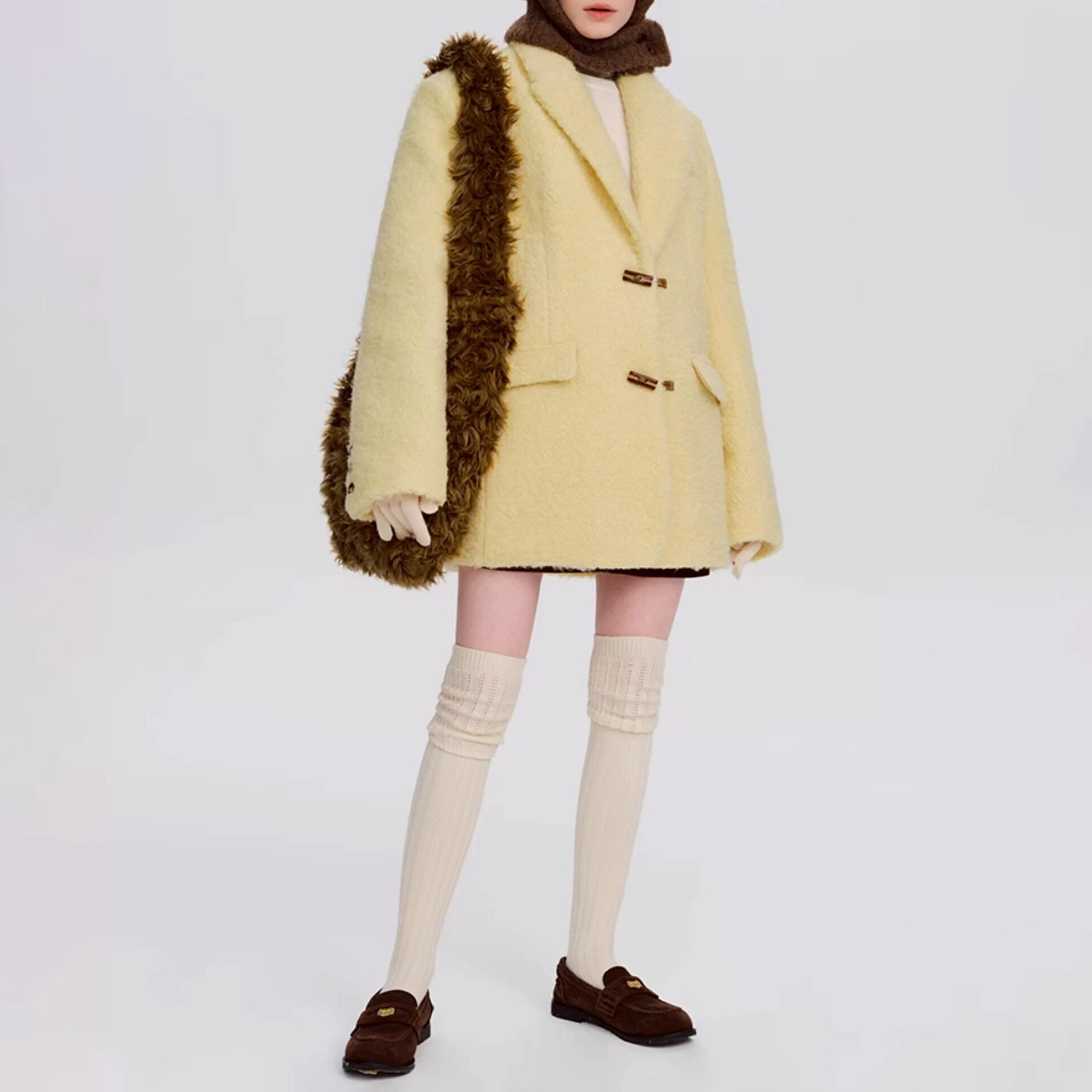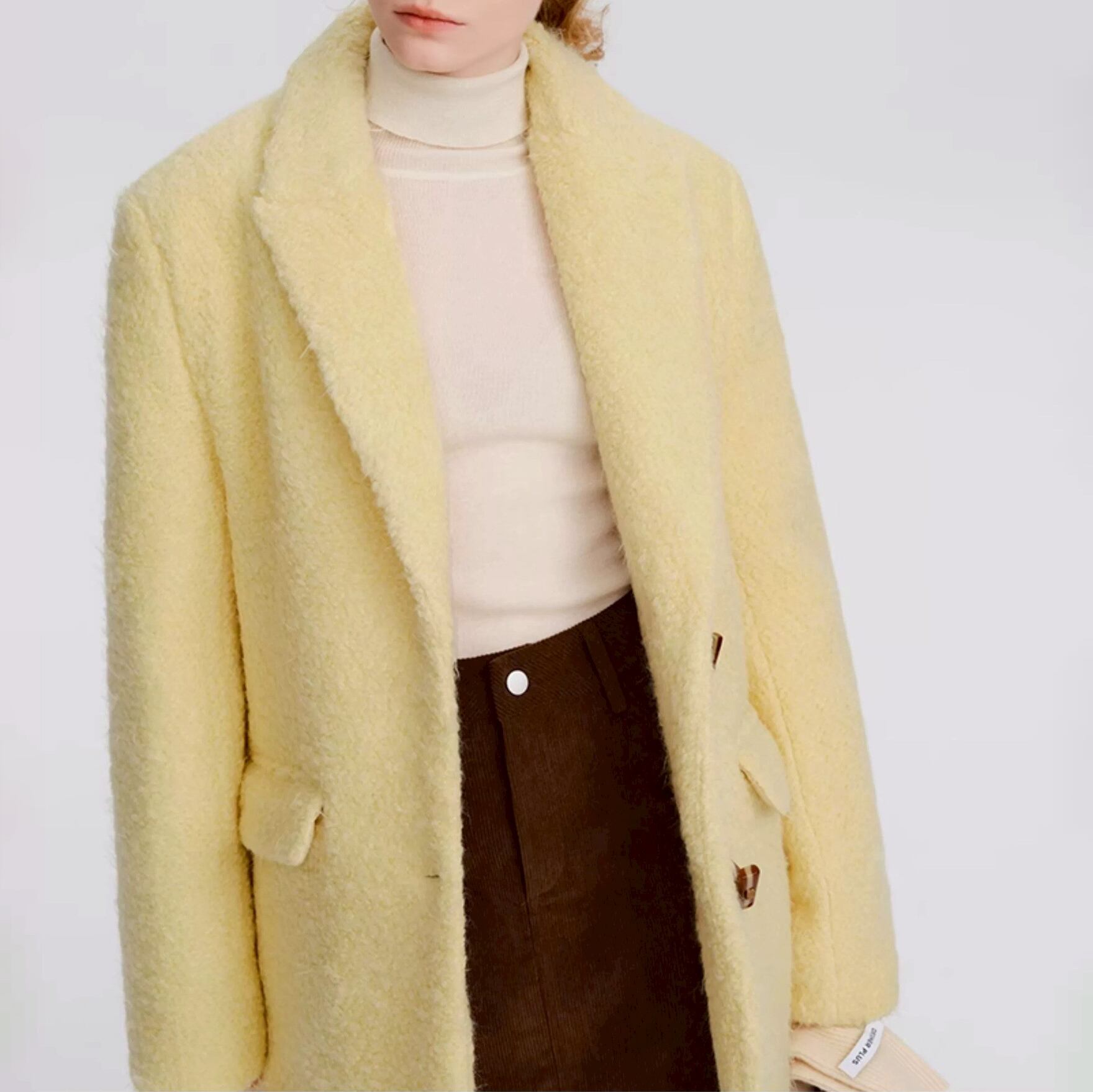 ヒップ丈でスタイルアップ効果があり、バランスの取れた着こなしに。 シングルブレストのデザインが、洗練された印象を与えます。 ポケットがアクセントとなり、カジュアルながらも上品さを演出。 ■サイズ (cm) S / 肩幅:49 胸囲:110 着丈:73 袖丈:62 M / 肩幅:50 胸囲:114 着丈:74 袖丈:63 L / 肩幅:51 胸囲:118 着丈:75 袖丈:64 ※サイズ表記につき、約1~3cmの誤差がある場合がございます。 ■カラー イエロー ■素材 ウール:59% ナイロン:12% ポリエステル:29% ◼お届けについて ご決済から発送まで1~3週間前後のお時間をいただいております。 (※商品の状況によっては、3週間以上かかる場合もございます。) ◼注意事項 ・タイミングによっては 商品在庫切れにより 注文キャンセルとさせていただく恐れもございますので、予めご了承くださいませ。 ・こちらは輸入品となります。日本製とは検品基準が異なる為、 新品未使用品でもごくわずかな汚れや ほつれがある場合もございます。 ・仕入れ工場を変えることがあるため、記載サイズと若干異なる場合がございます。 ・商品の色味は、お手持ちのスマートフォンの画面によって実物と若干異なる 場合がございます。 ・イメージ違いやサイズ交換等、お客さまご都合による交換、返品は対応出来かねます。 ———————————— ご注文前にご確認ください →https://official.lhery.com/about ————————————