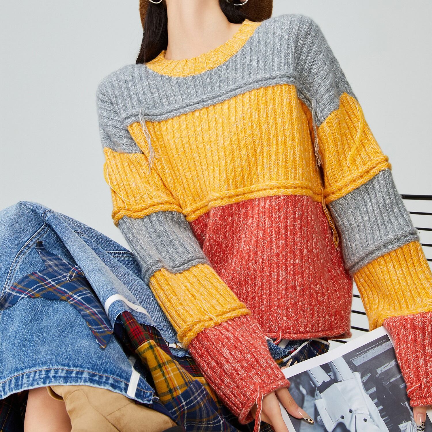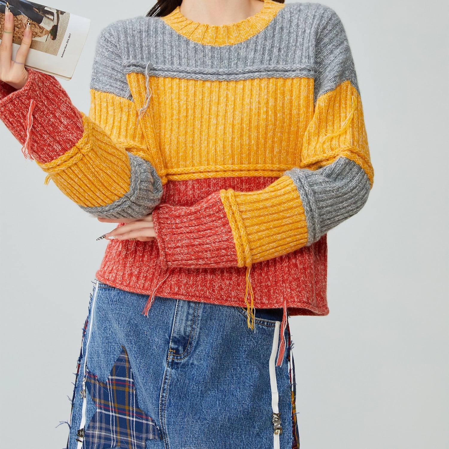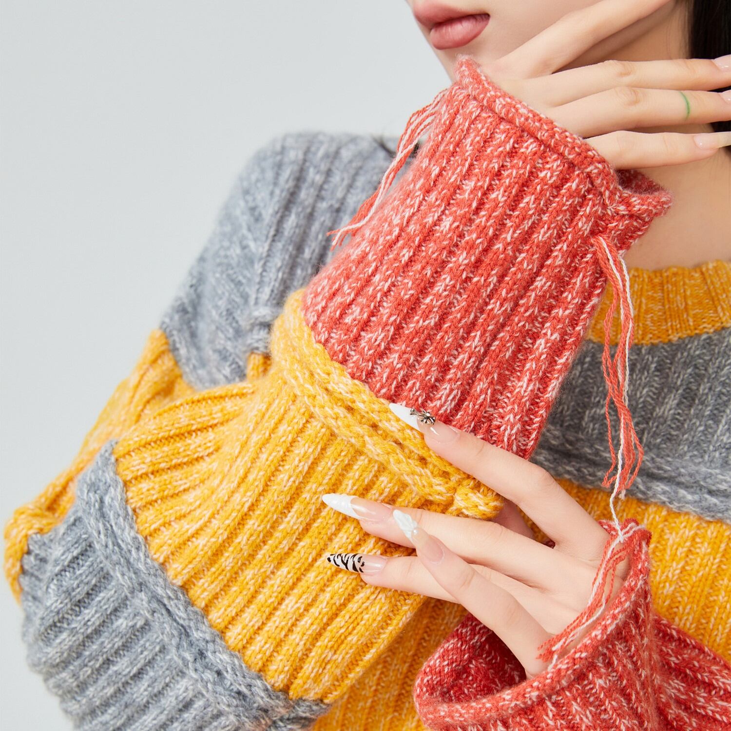 コーディネートの主役になる、カラーブロックデザインが魅力。 短丈なので、スタイルアップ効果も期待できます。 シンプルなボトムスと合わせて、ニットのデザインを引き立てるのがおすすめ。 ■サイズ (cm) S / 肩幅:30 胸囲:94 着丈:62 袖丈:41 M / 肩幅:31 胸囲:98 着丈:63 袖丈:42 L / 肩幅:32 胸囲:102 着丈:64 袖丈:43 XL / 肩幅:33 胸囲:106 着丈:65 袖丈:44 ※サイズ表記につき、約1~3cmの誤差がある場合がございます。 ■カラー グレー × イエロー × オレンジ ■素材 ポリエステル ◼お届けについて ご決済から発送まで1~3週間前後のお時間をいただいております。 (※商品の状況によっては、3週間以上かかる場合もございます。) ◼注意事項 ・タイミングによっては 商品在庫切れにより 注文キャンセルとさせていただく恐れもございますので、予めご了承くださいませ。 ・こちらは輸入品となります。日本製とは検品基準が異なる為、 新品未使用品でもごくわずかな汚れや ほつれがある場合もございます。 ・仕入れ工場を変えることがあるため、記載サイズと若干異なる場合がございます。 ・商品の色味は、お手持ちのスマートフォンの画面によって実物と若干異なる 場合がございます。 ・イメージ違いやサイズ交換等、お客さまご都合による交換、返品は対応出来かねます。 ———————————— ご注文前にご確認ください →https://official.lhery.com/about ————————————
