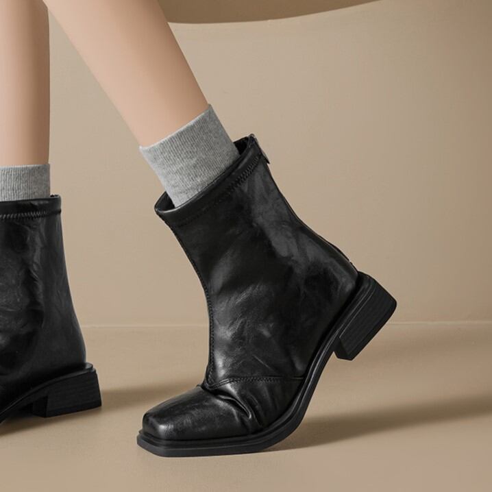 足元を上品に演出するショートブーツ。 ローヒールなので、長時間のお出かけにもおすすめです。 スカートやパンツスタイルにも合わせやすく、様々なコーディネートを楽しめます。 ■サイズ 35 : 22.5cm 36 : 23.0cm 37 : 23.5cm 38 : 24.0cm 39 : 24.5cm 40 : 25.0cm ヒール高:4cm 筒周り:25.5cm 筒丈:15.5cm 足囲:25cm ※サイズ表記につき、約1~3cmの誤差がある場合がございます。 ■カラー ブラウン ブラック ■素材 アッパー:合成皮革 ライニング:起毛素材 (フリース) インソール:起毛素材 (フリース) アウトソール:ゴム ◼お届けについて ご決済から発送まで1~3週間前後のお時間をいただいております。 (※商品の状況によっては、3週間以上かかる場合もございます。) ◼注意事項 ・タイミングによっては 商品在庫切れにより 注文キャンセルとさせていただく恐れもございますので、予めご了承くださいませ。 ・こちらは輸入品となります。日本製とは検品基準が異なる為、 新品未使用品でもごくわずかな汚れや ほつれがある場合もございます。 ・仕入れ工場を変えることがあるため、記載サイズと若干異なる場合がございます。 ・商品の色味は、お手持ちのスマートフォンの画面によって実物と若干異なる 場合がございます。 ・イメージ違いやサイズ交換等、お客さまご都合による交換、返品は対応出来かねます。 ———————————— ご注文前にご確認ください →https://official.lhery.com/about ————————————