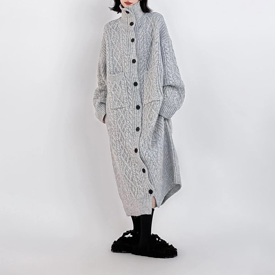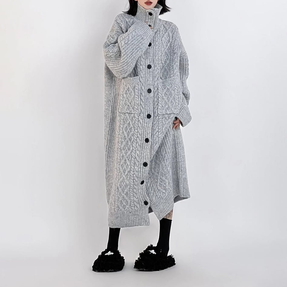 ゆったりとしたオーバーサイズシルエットで、リラックスした着心地。 首元まで暖かいハイネックで、寒い季節も安心。 ボタンを閉めてワンピース風に、開けて羽織りとして、着こなしのアレンジを楽しめます。 ■サイズ (cm) M / 肩幅:62 胸囲:124 着丈:105 袖丈:55 L / 肩幅:62 胸囲:124 着丈:120 袖丈:55 ※サイズ表記につき、約1~3cmの誤差がある場合がございます。 ■カラー グレー ブラック レッド ■素材 ポリエステル ◼お届けについて ご決済から発送まで1~3週間前後のお時間をいただいております。 (※商品の状況によっては、3週間以上かかる場合もございます。) ◼注意事項 ・タイミングによっては 商品在庫切れにより 注文キャンセルとさせていただく恐れもございますので、予めご了承くださいませ。 ・こちらは輸入品となります。日本製とは検品基準が異なる為、 新品未使用品でもごくわずかな汚れや ほつれがある場合もございます。 ・仕入れ工場を変えることがあるため、記載サイズと若干異なる場合がございます。 ・商品の色味は、お手持ちのスマートフォンの画面によって実物と若干異なる 場合がございます。 ・イメージ違いやサイズ交換等、お客さまご都合による交換、返品は対応出来かねます。 ———————————— ご注文前にご確認ください →https://official.lhery.com/about ————————————