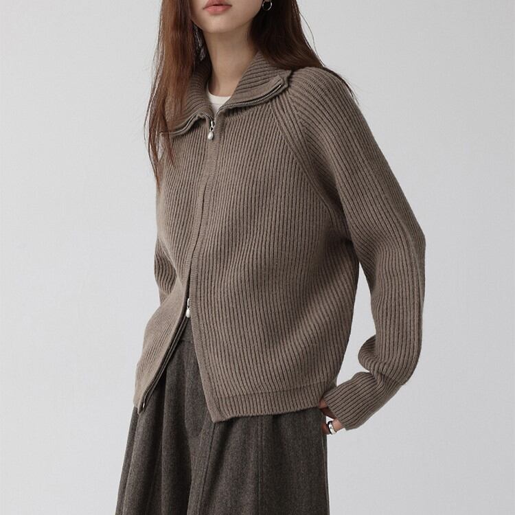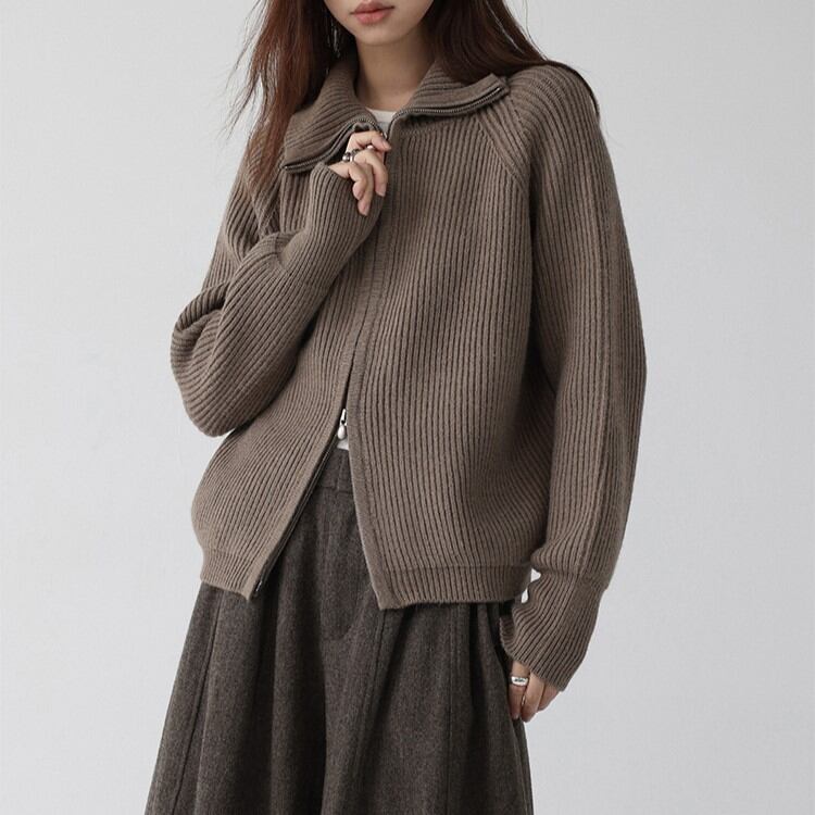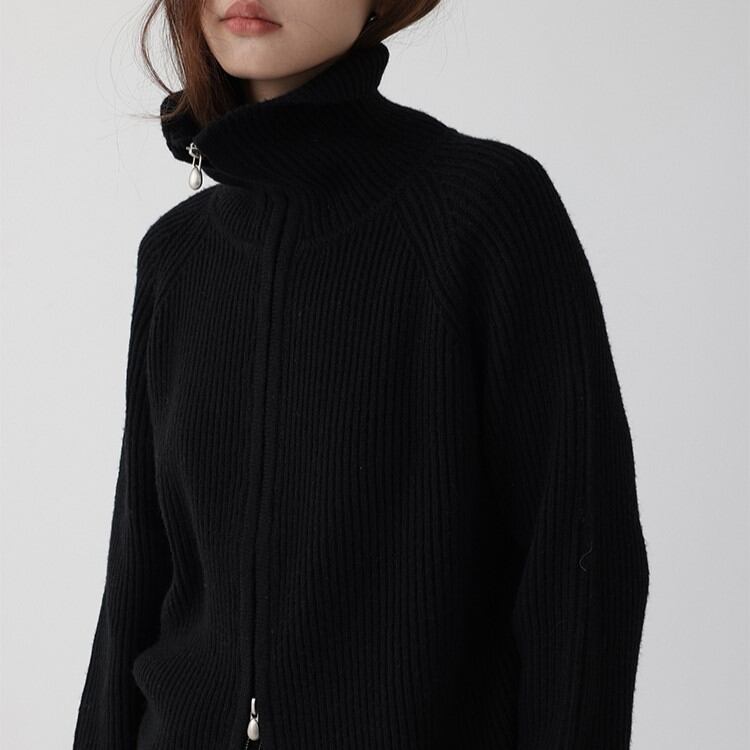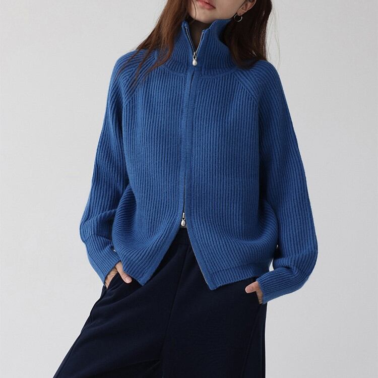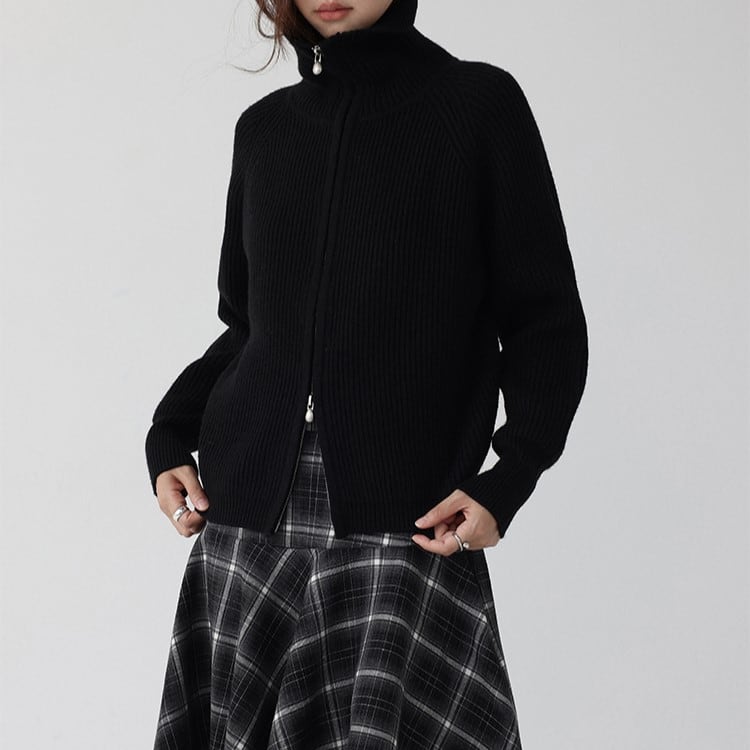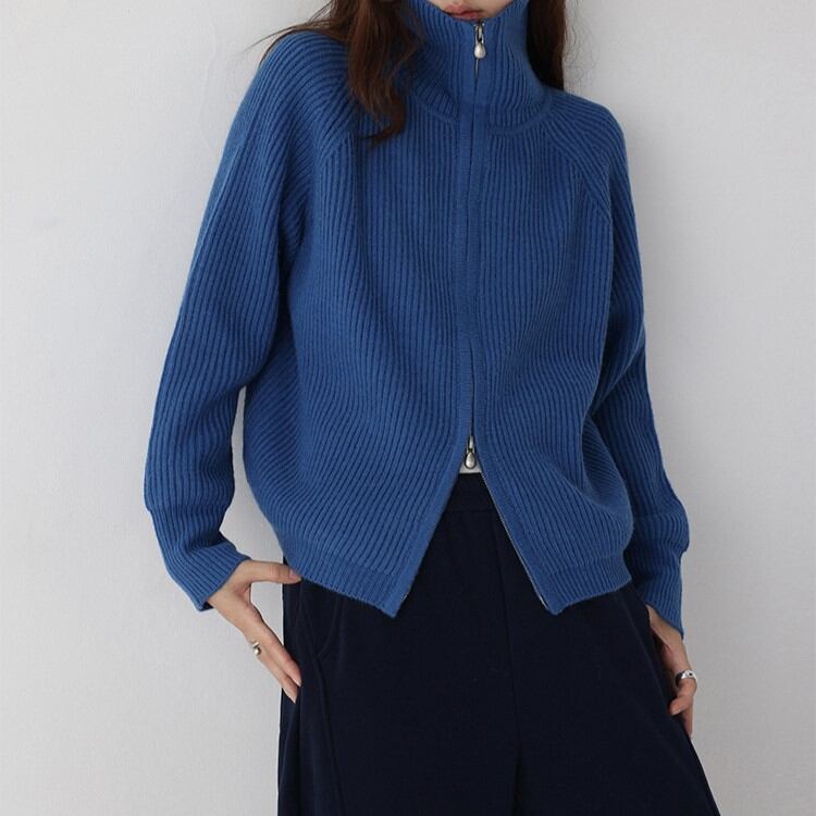 ダブルジッパーリブハイネックニットカーディガン H0050