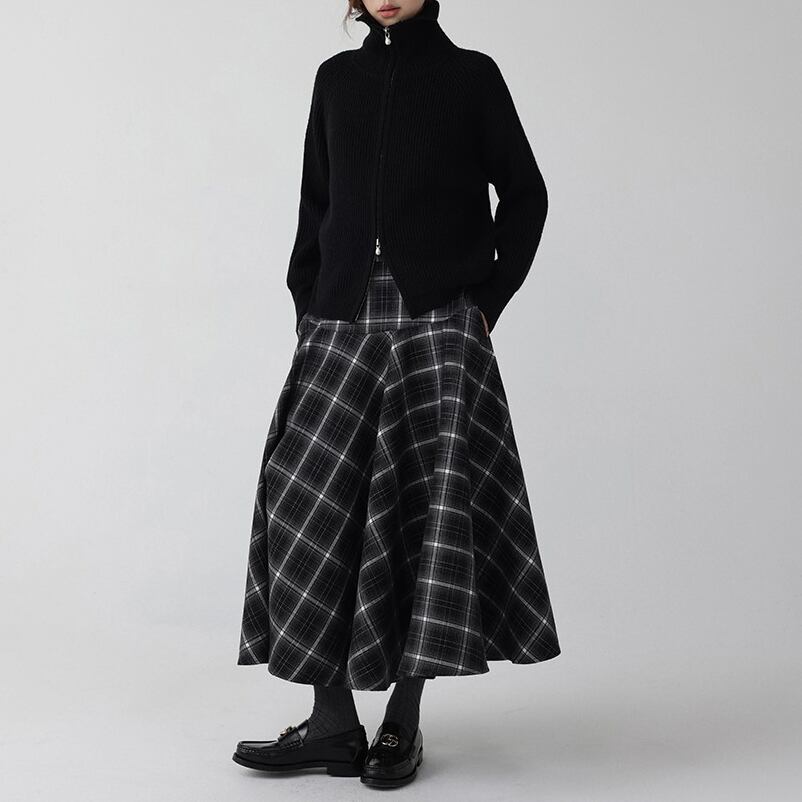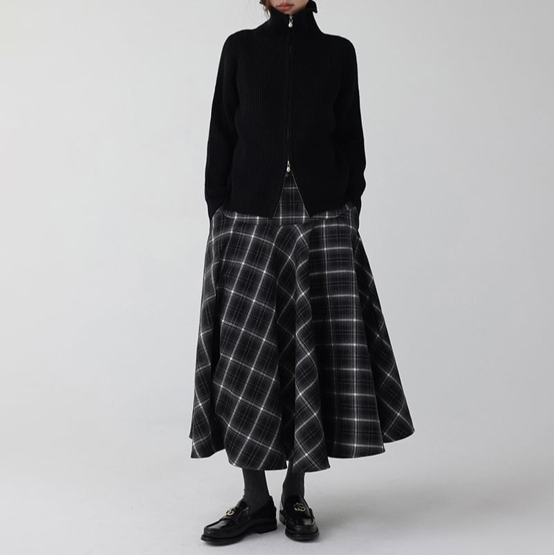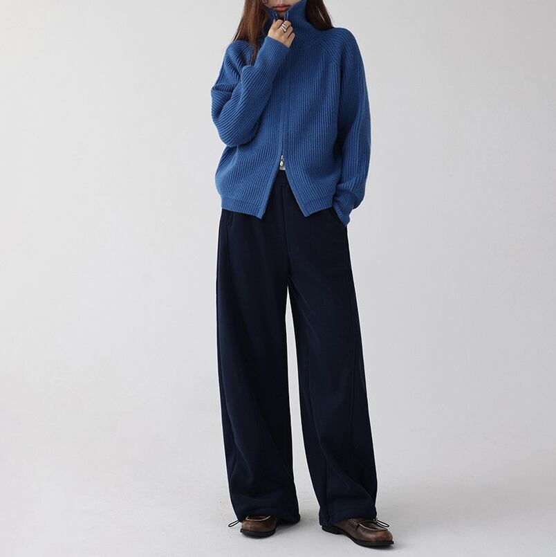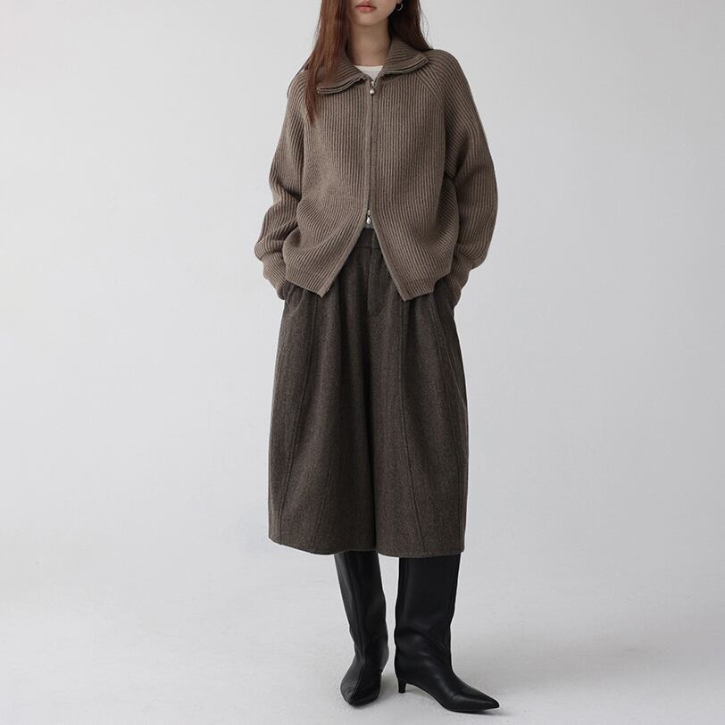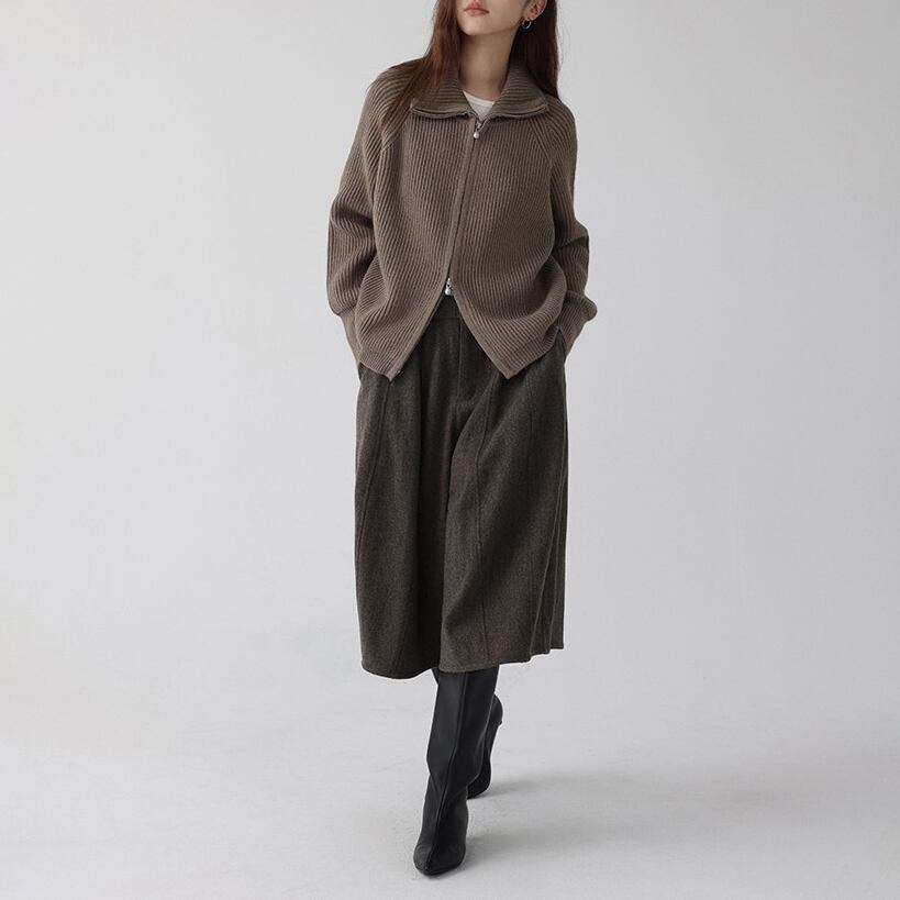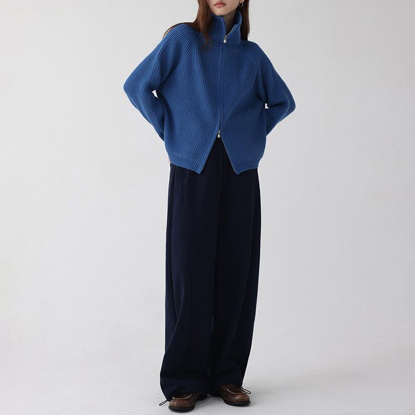 ダブルジッパーリブハイネックニットカーディガン H0050