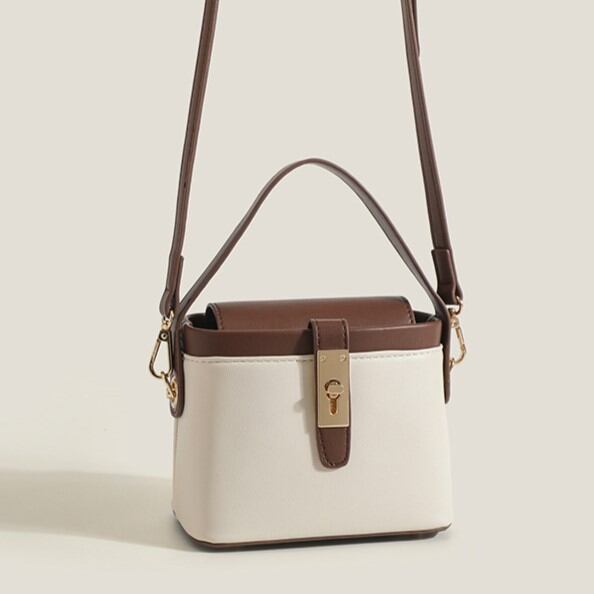 バイカラー トップハンドルボックスショルダーバッグ H0053