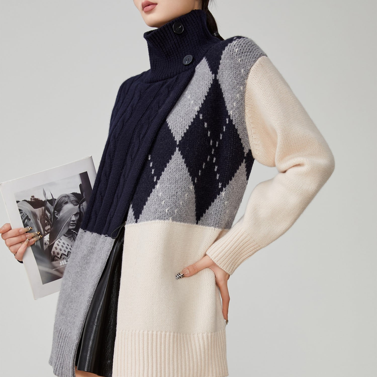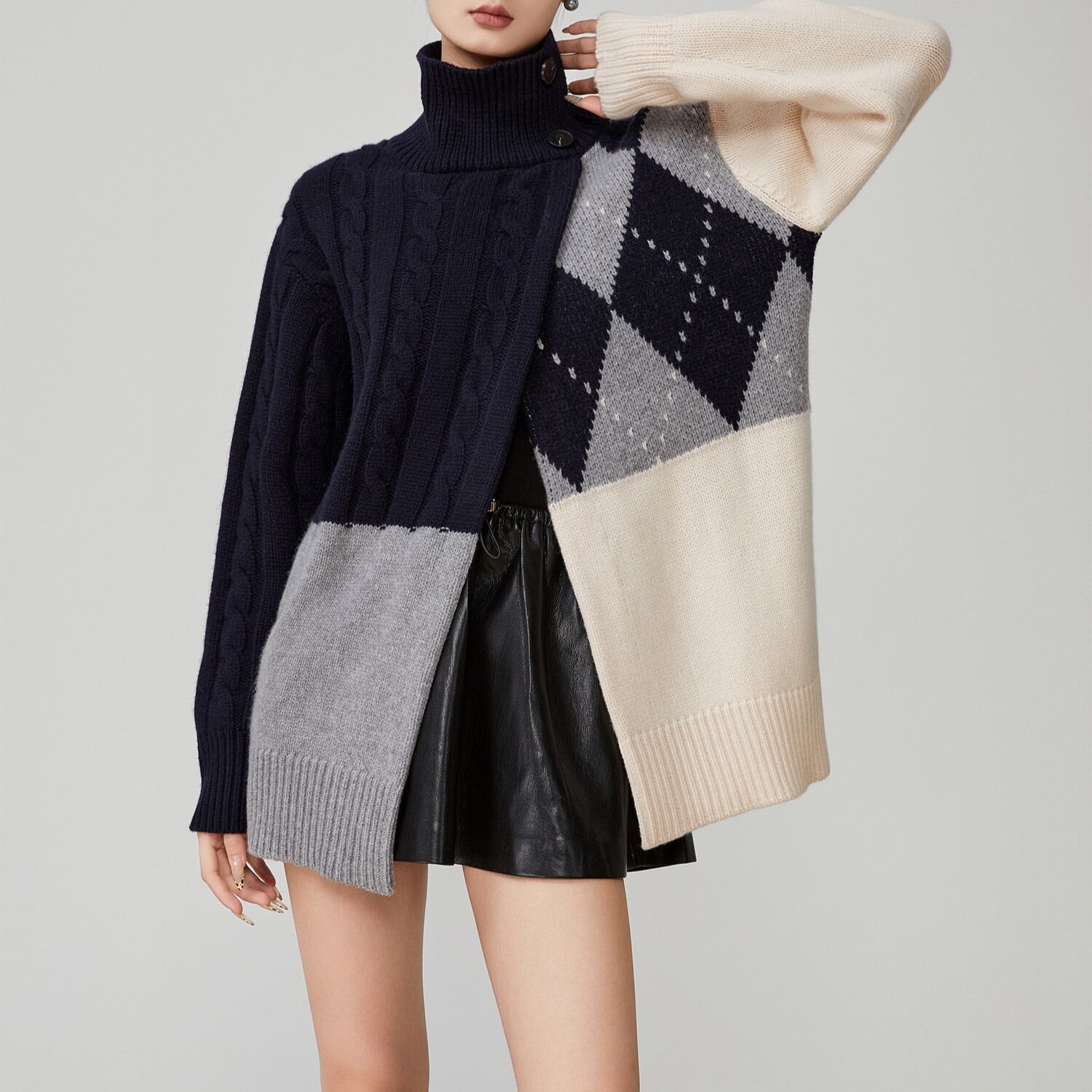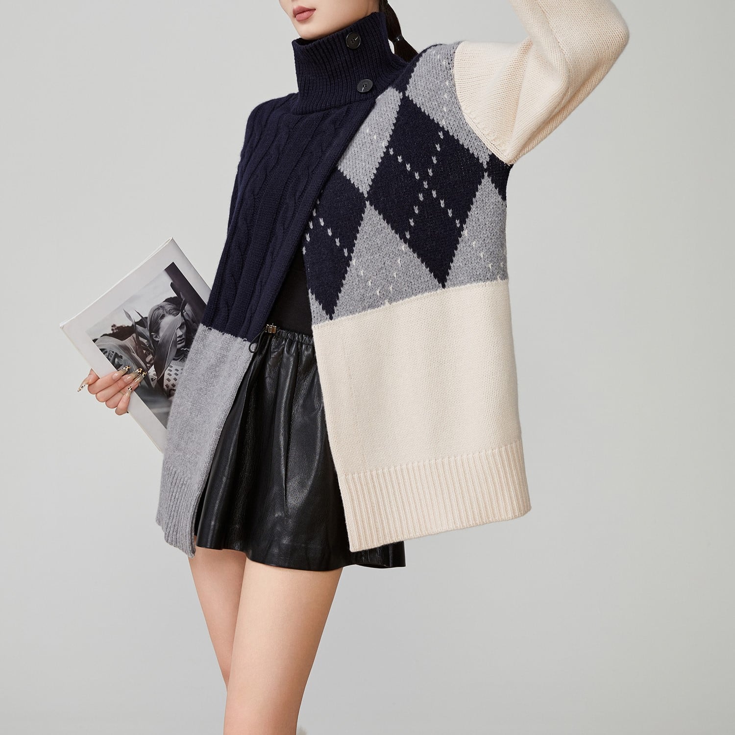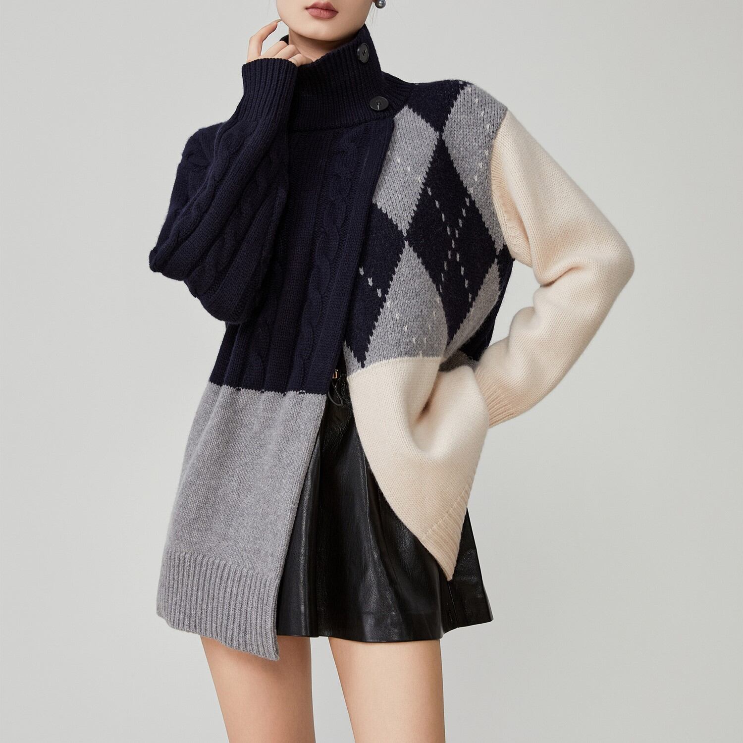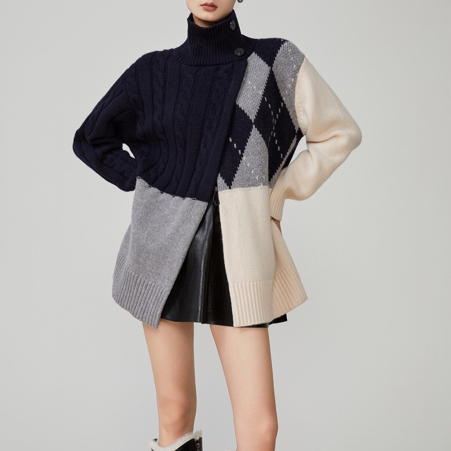 アシンメトリーなデザインが目を引く、個性を演出するニット。 タートルネックが首元を暖かく包み込み、これからの季節に活躍。 落ち着いたカラーとアーガイル柄が、大人っぽく上品な印象を与えます。 ■サイズ (cm) S / 肩幅:48 胸囲:96 着丈:68 袖丈:53 M / 肩幅:50 胸囲:100 着丈:70 袖丈:54 L / 肩幅:52 胸囲:104 着丈:72 袖丈:55 XL / 肩幅:54 胸囲:108 着丈:74 袖丈:56 ※サイズ表記につき、約1~3cmの誤差がある場合がございます。 ■カラー ブラック ■素材 ポリエステル ◼お届けについて ご決済から発送まで1~3週間前後のお時間をいただいております。 (※商品の状況によっては、3週間以上かかる場合もございます。) ◼注意事項 ・タイミングによっては 商品在庫切れにより 注文キャンセルとさせていただく恐れもございますので、予めご了承くださいませ。 ・こちらは輸入品となります。日本製とは検品基準が異なる為、 新品未使用品でもごくわずかな汚れや ほつれがある場合もございます。 ・仕入れ工場を変えることがあるため、記載サイズと若干異なる場合がございます。 ・商品の色味は、お手持ちのスマートフォンの画面によって実物と若干異なる 場合がございます。 ・イメージ違いやサイズ交換等、お客さまご都合による交換、返品は対応出来かねます。 ———————————— ご注文前にご確認ください →https://official.lhery.com/about ————————————
