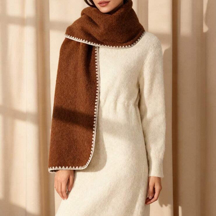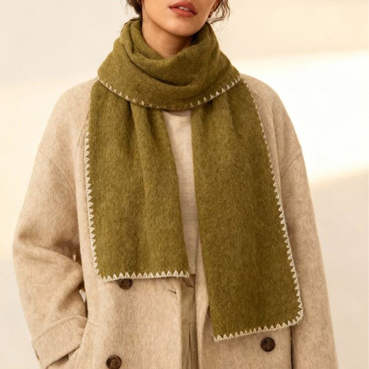 コーディネートに取り入れやすいカラーで、デイリーユースに活躍するアイテム。 シンプルなデザインの中に、ステッチトリムがさりげなく個性を主張。 首元を暖かく包み込み、秋冬のスタイリングを上品に格上げします。 ■サイズ (cm) F / 長さ:185 幅:40 ※サイズ表記につき、約1~3cmの誤差がある場合がございます。 ■カラー ホワイト ブラック ブラウン ピンク レッド グリーン ■素材 アクリル:51.7% ウール:31% ナイロン:17.3% ◼お届けについて ご決済から発送まで1~3週間前後のお時間をいただいております。 (※商品の状況によっては、3週間以上かかる場合もございます。) ◼注意事項 ・タイミングによっては 商品在庫切れにより 注文キャンセルとさせていただく恐れもございますので、予めご了承くださいませ。 ・こちらは輸入品となります。日本製とは検品基準が異なる為、 新品未使用品でもごくわずかな汚れや ほつれがある場合もございます。 ・仕入れ工場を変えることがあるため、記載サイズと若干異なる場合がございます。 ・商品の色味は、お手持ちのスマートフォンの画面によって実物と若干異なる 場合がございます。 ・イメージ違いやサイズ交換等、お客さまご都合による交換、返品は対応出来かねます。 ———————————— ご注文前にご確認ください →https://official.lhery.com/about ————————————