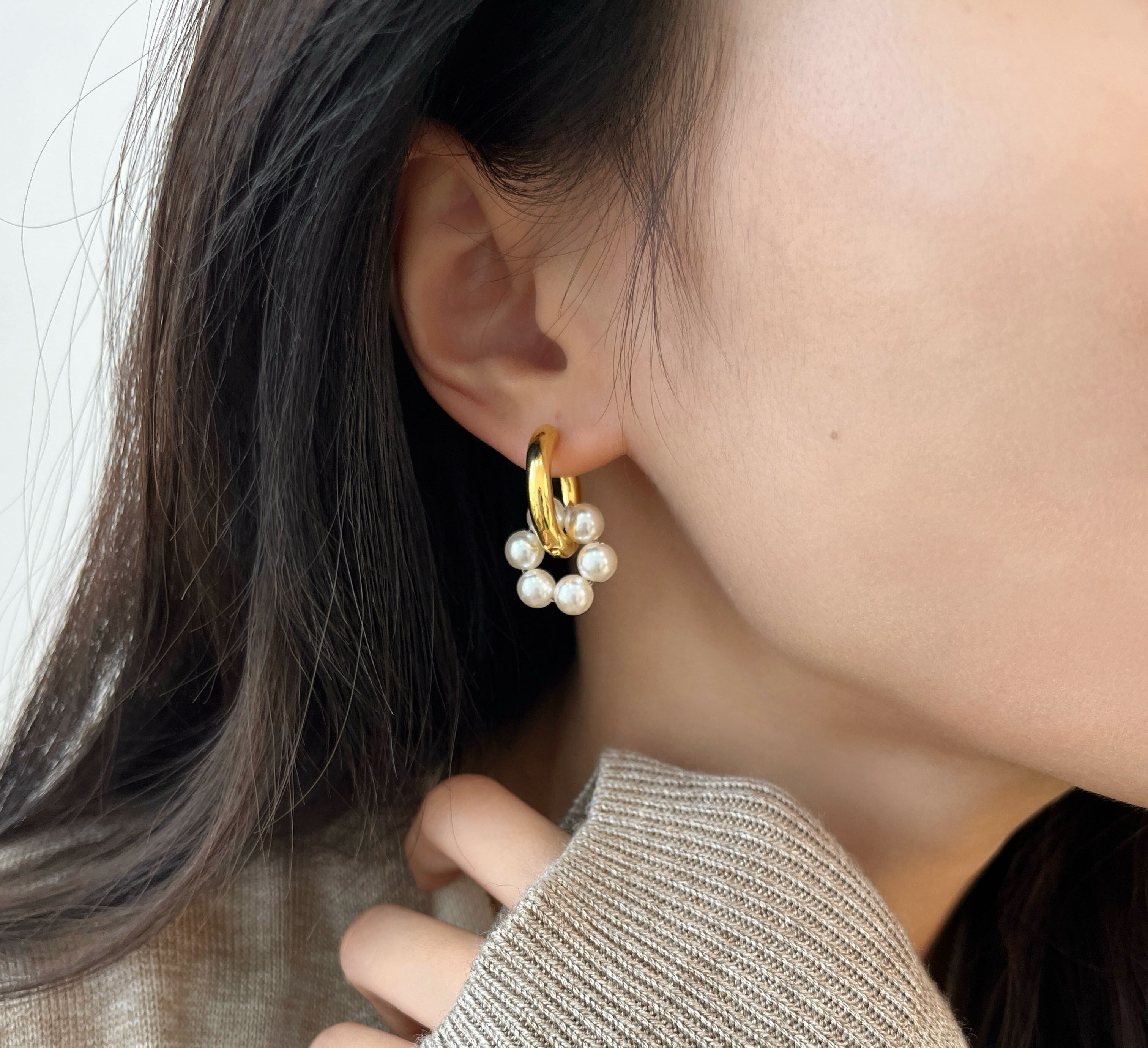 パール部分は取り外しが可能で、シンプルなフープピアスとしても楽しめる2wayタイプ。