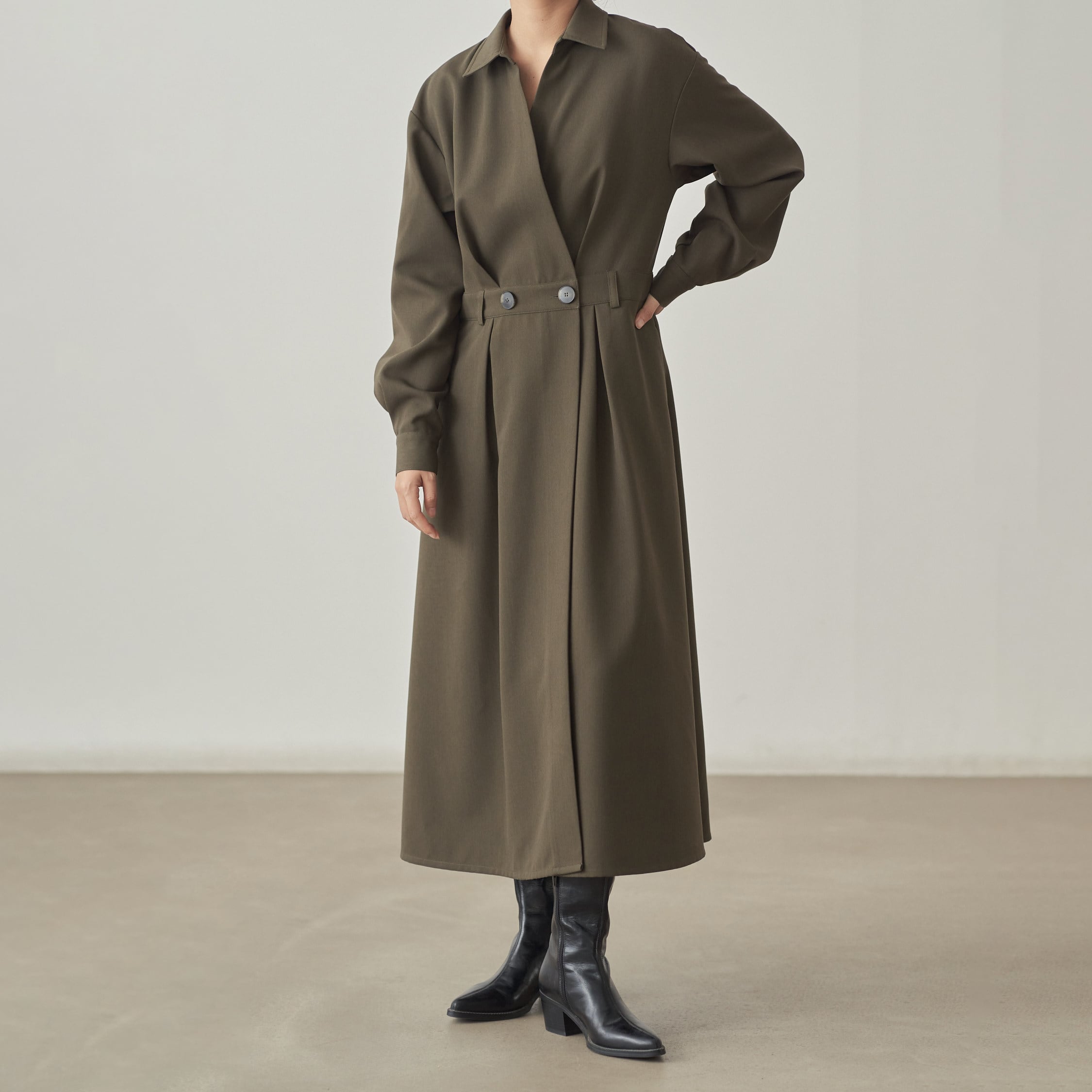 トレンチ風シャツワンピース H0067