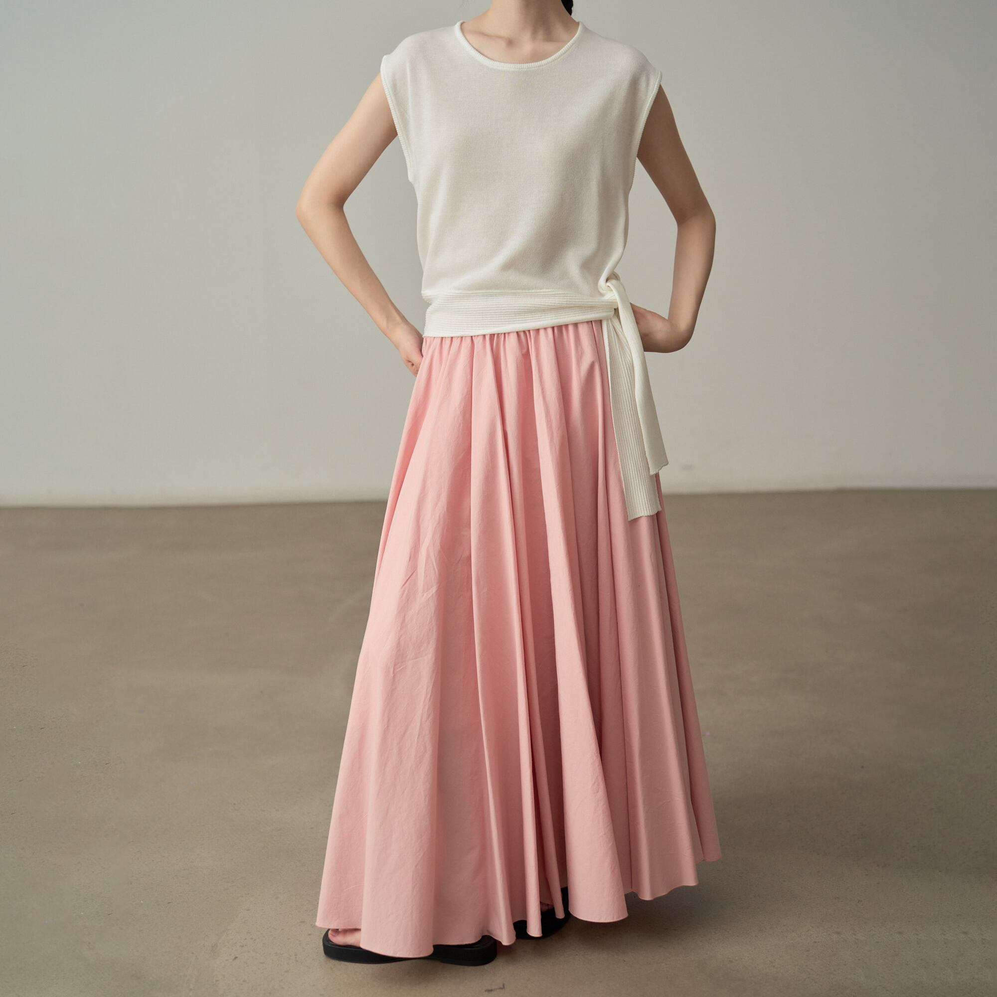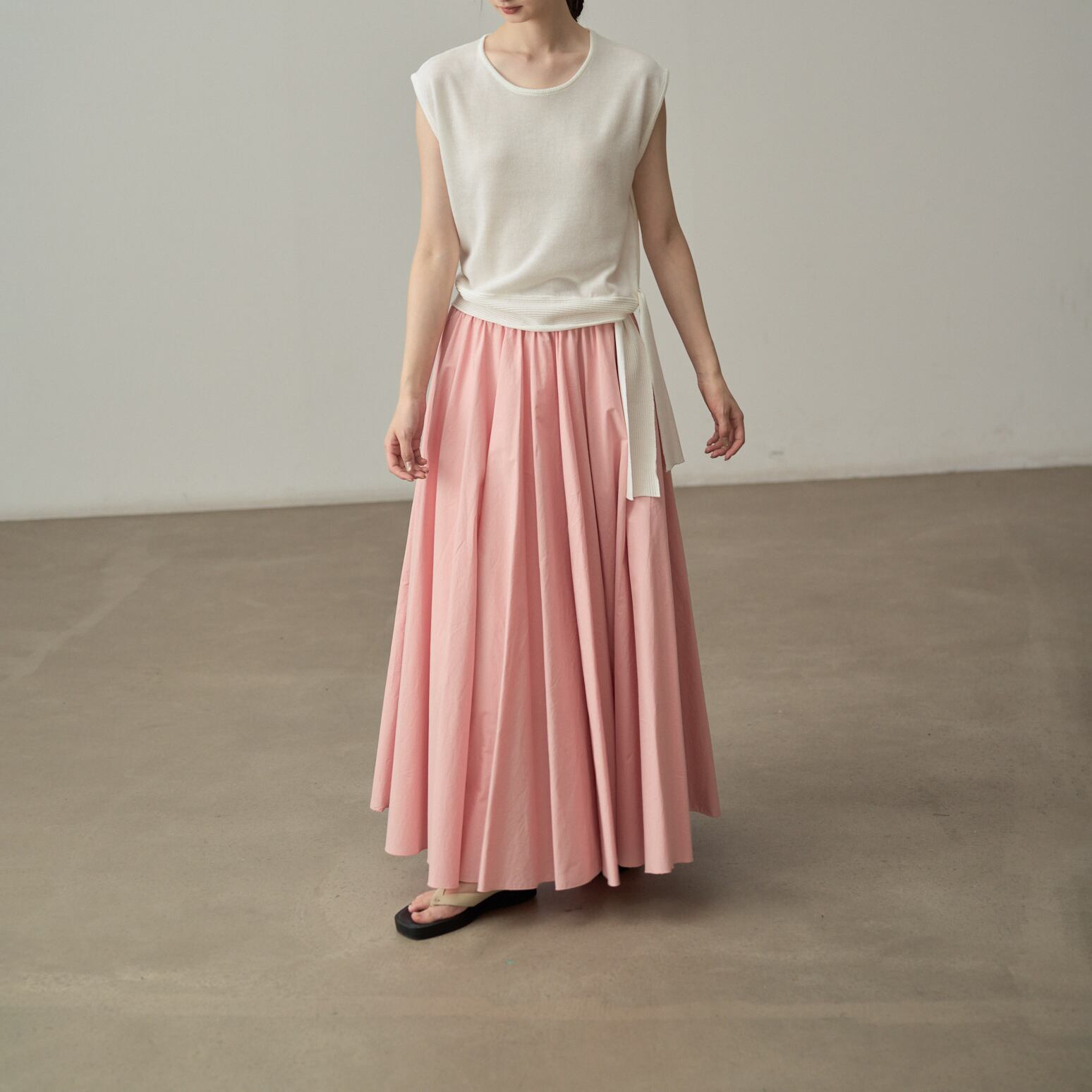 ふんわりと広がるシルエットが女性らしさを引き立てる。