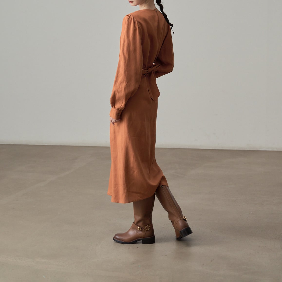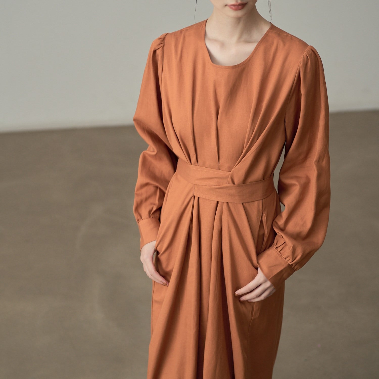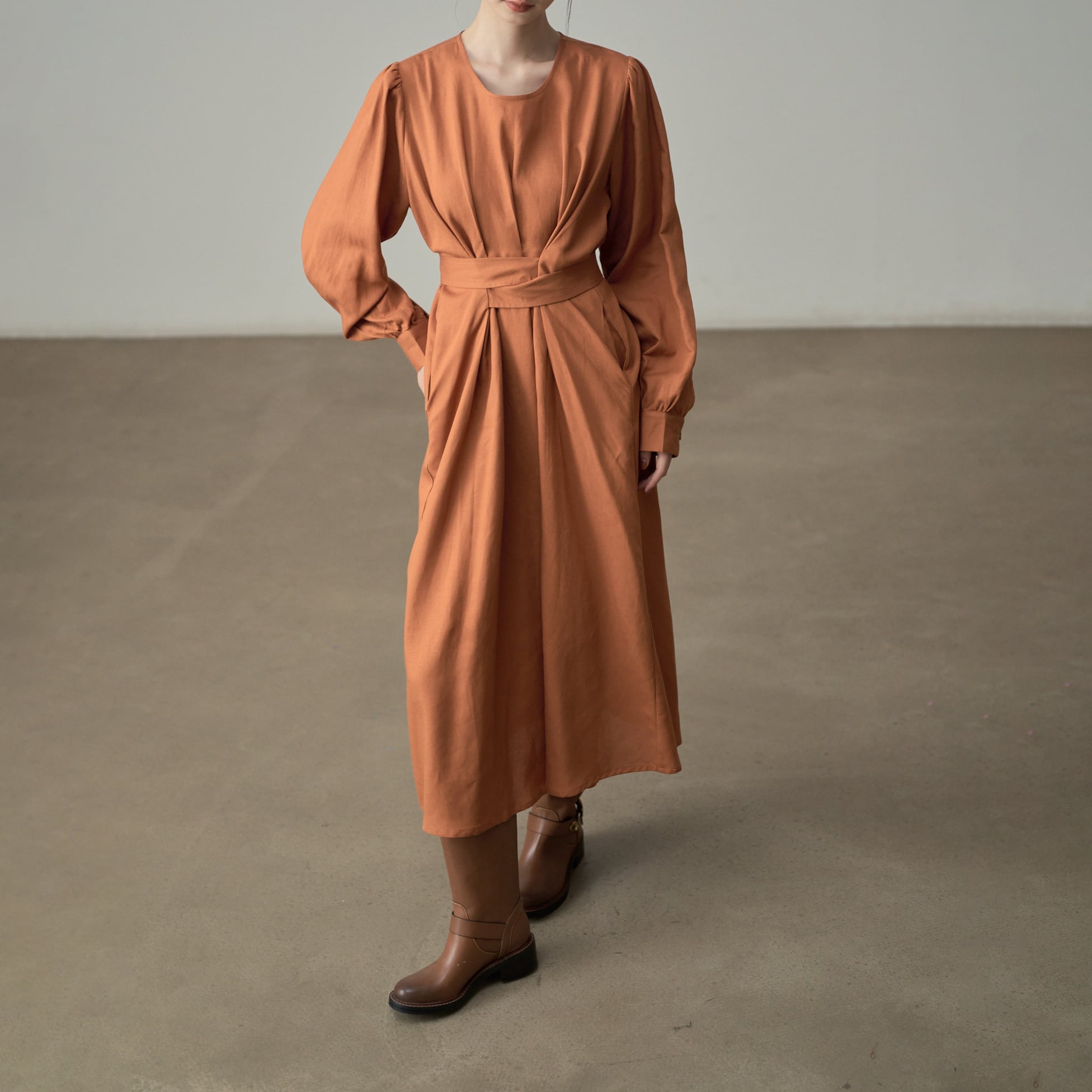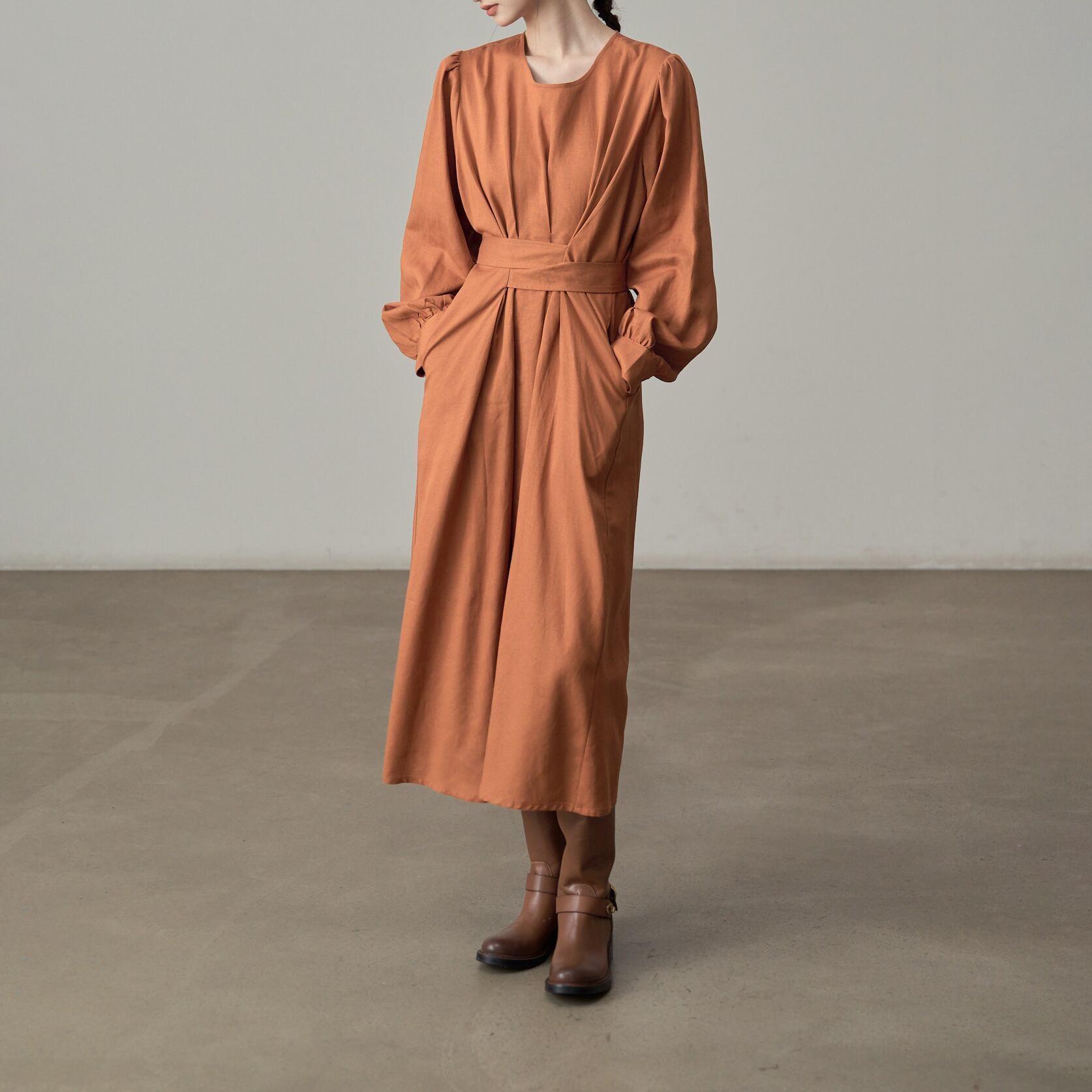 長袖デザインで、季節の変わり目にも重宝するワンピース。