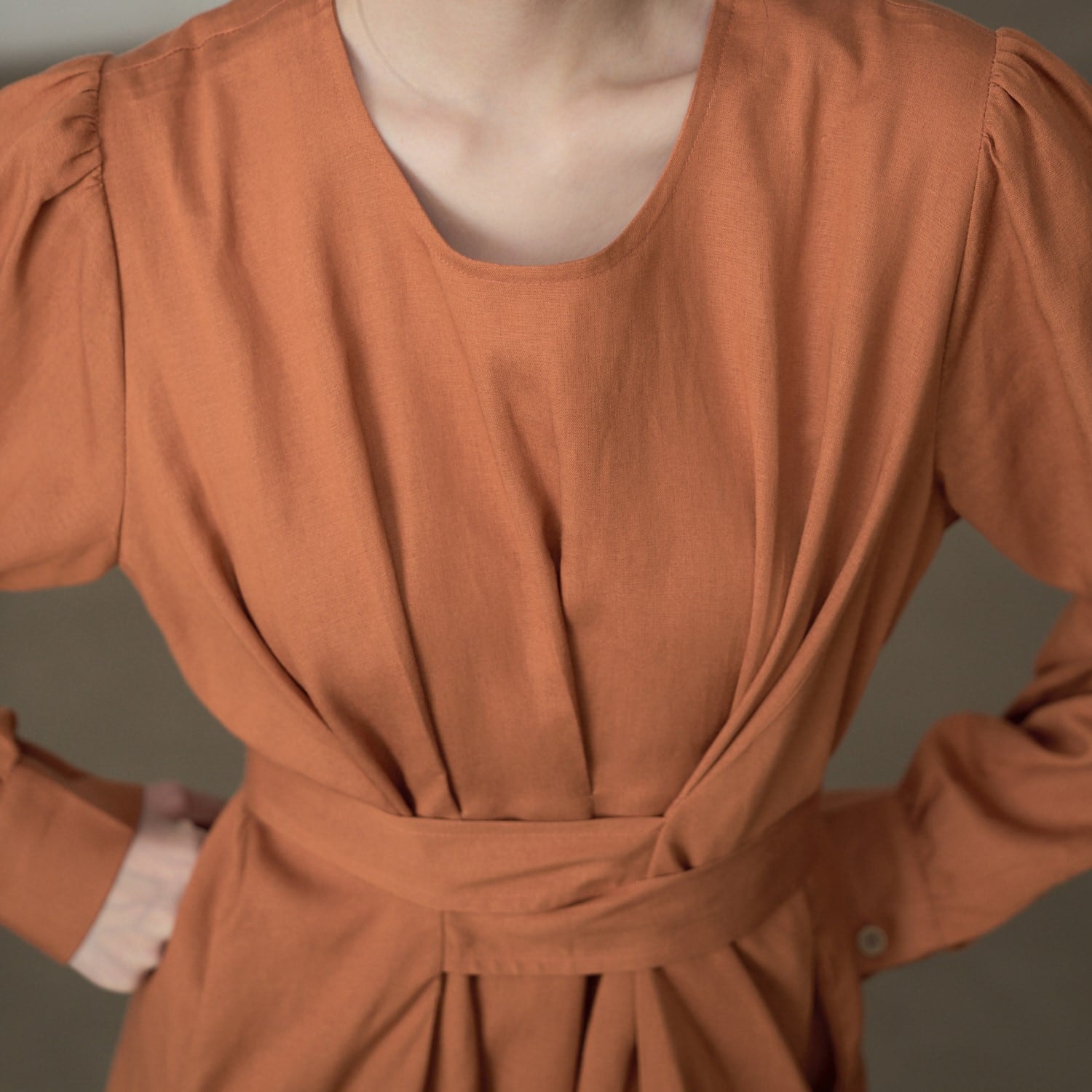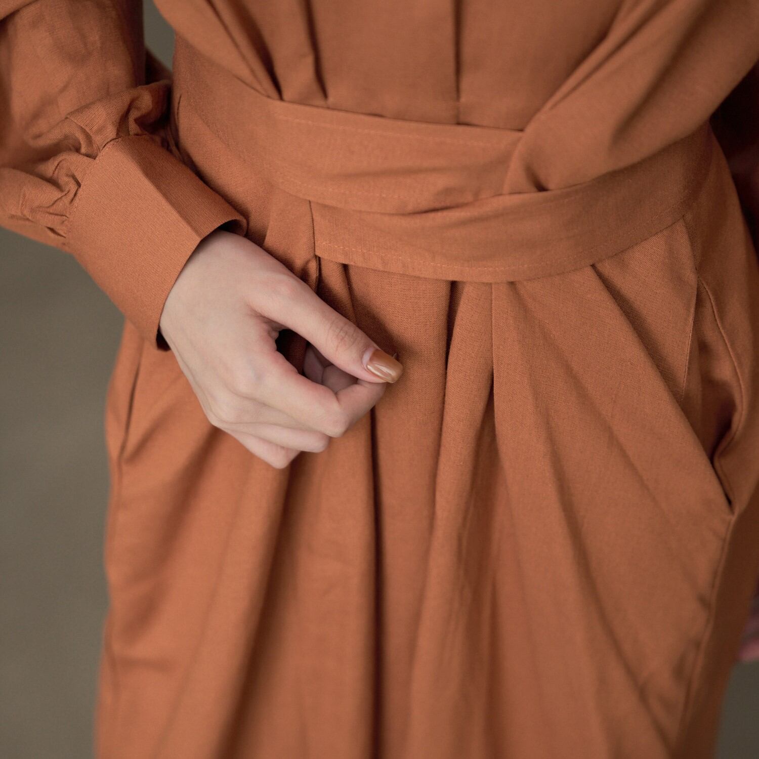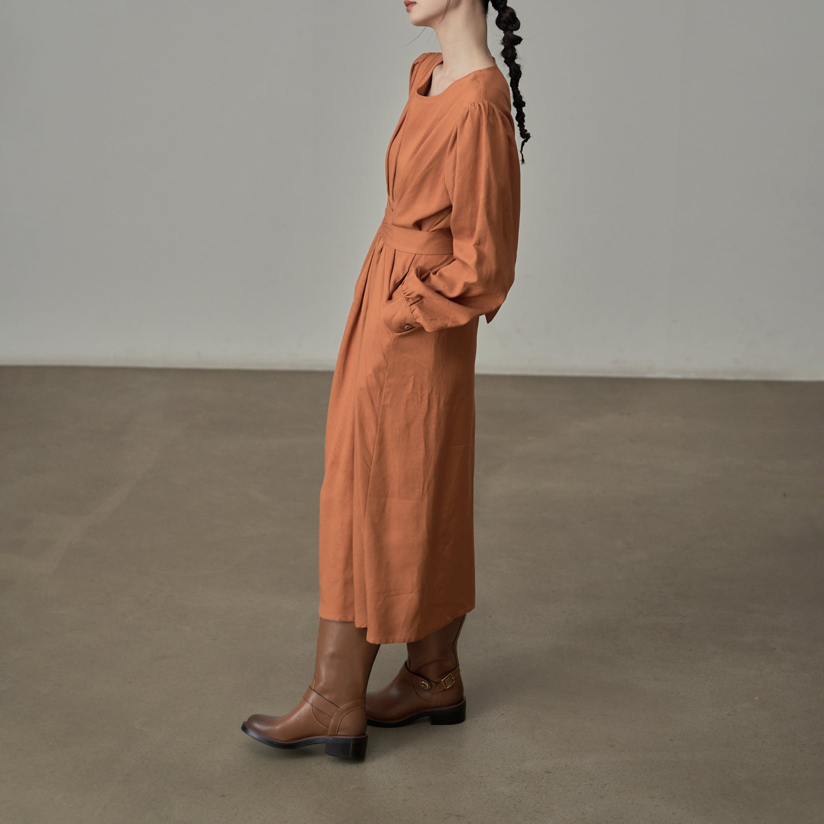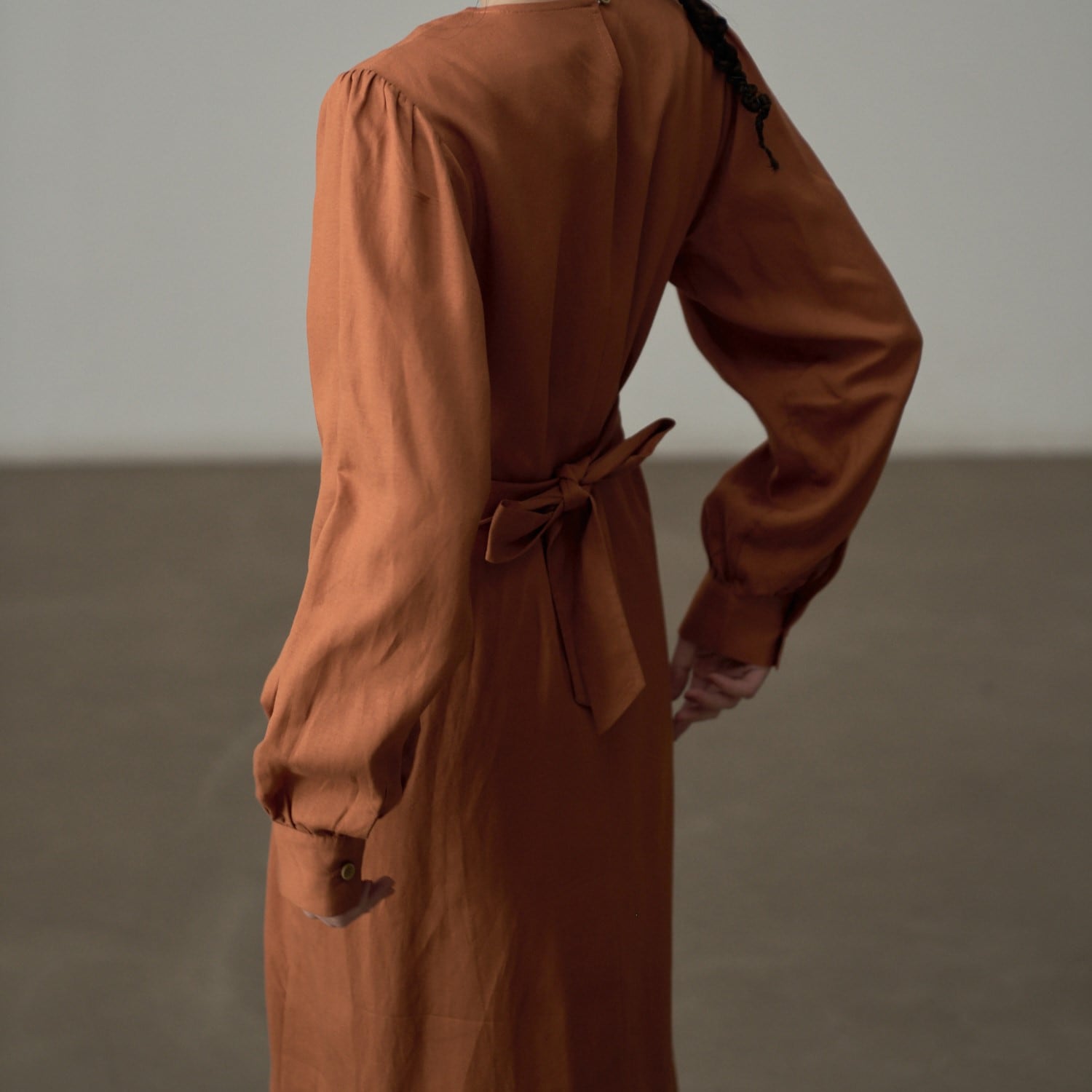 長袖デザインで、季節の変わり目にも重宝するワンピース。