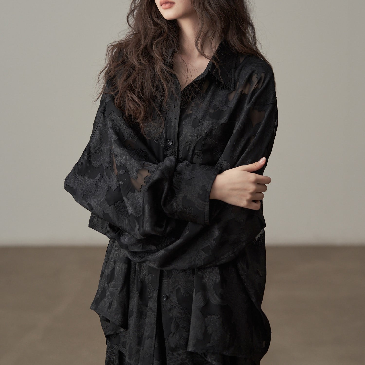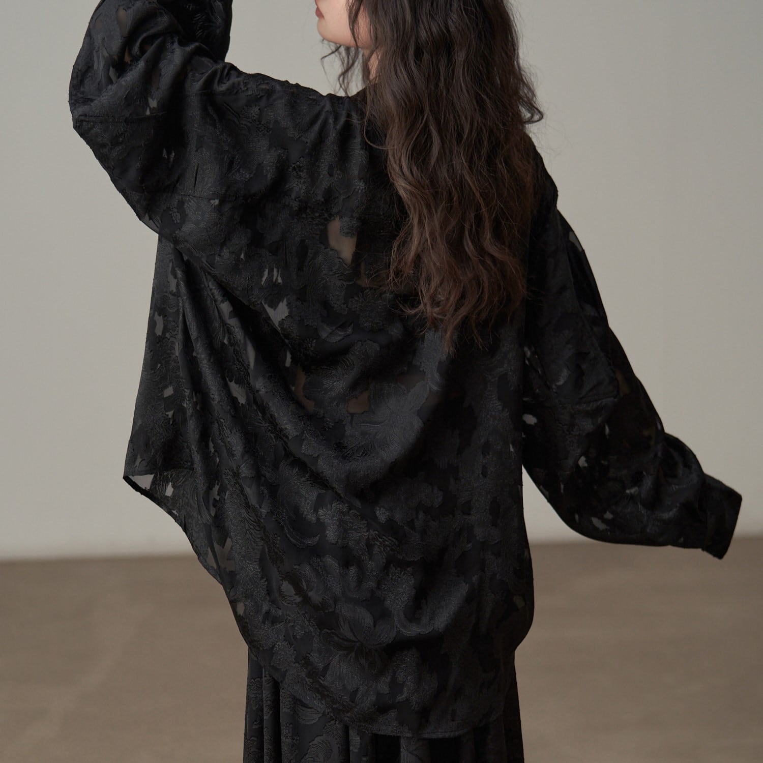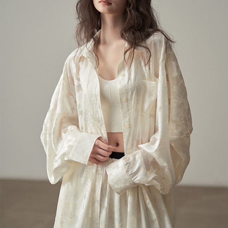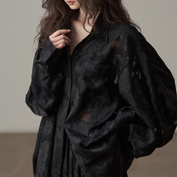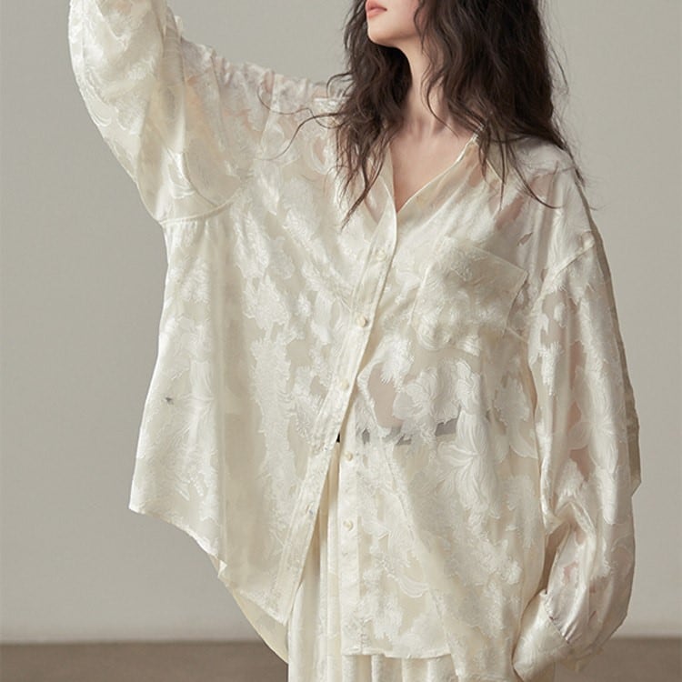 ジャガード織レトロ風リラックスブラウス H0072