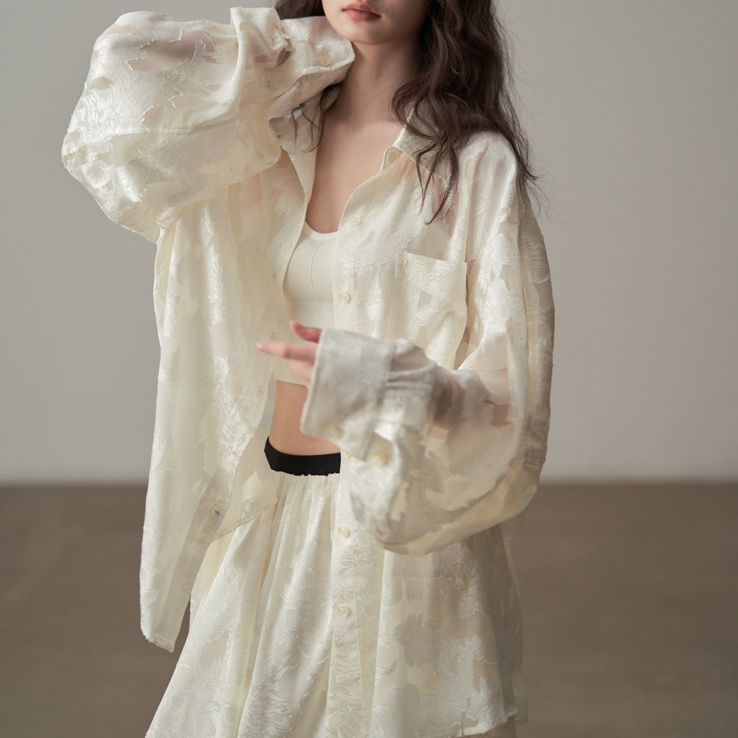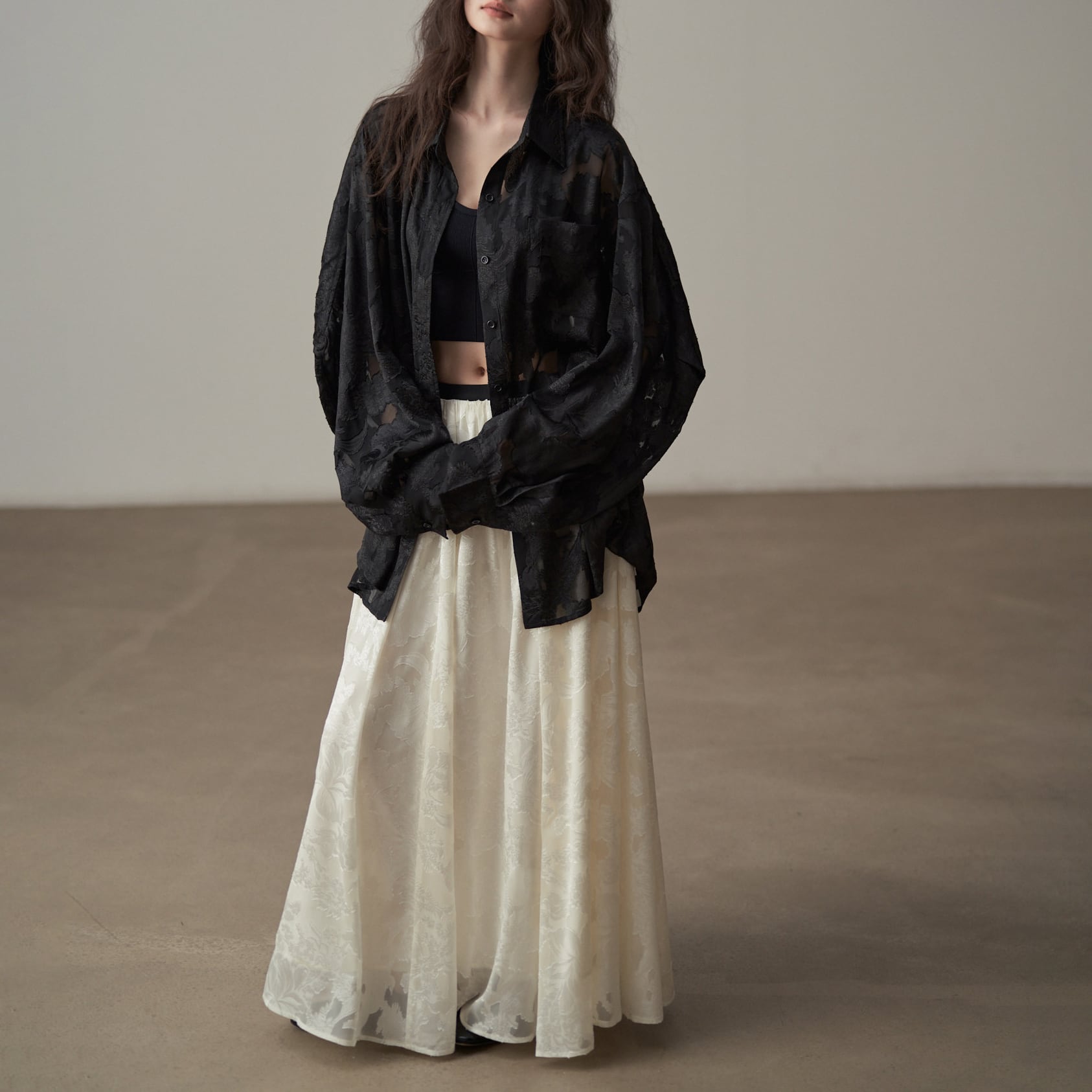 程よい透け感が、大人の抜け感を演出するブラウス。