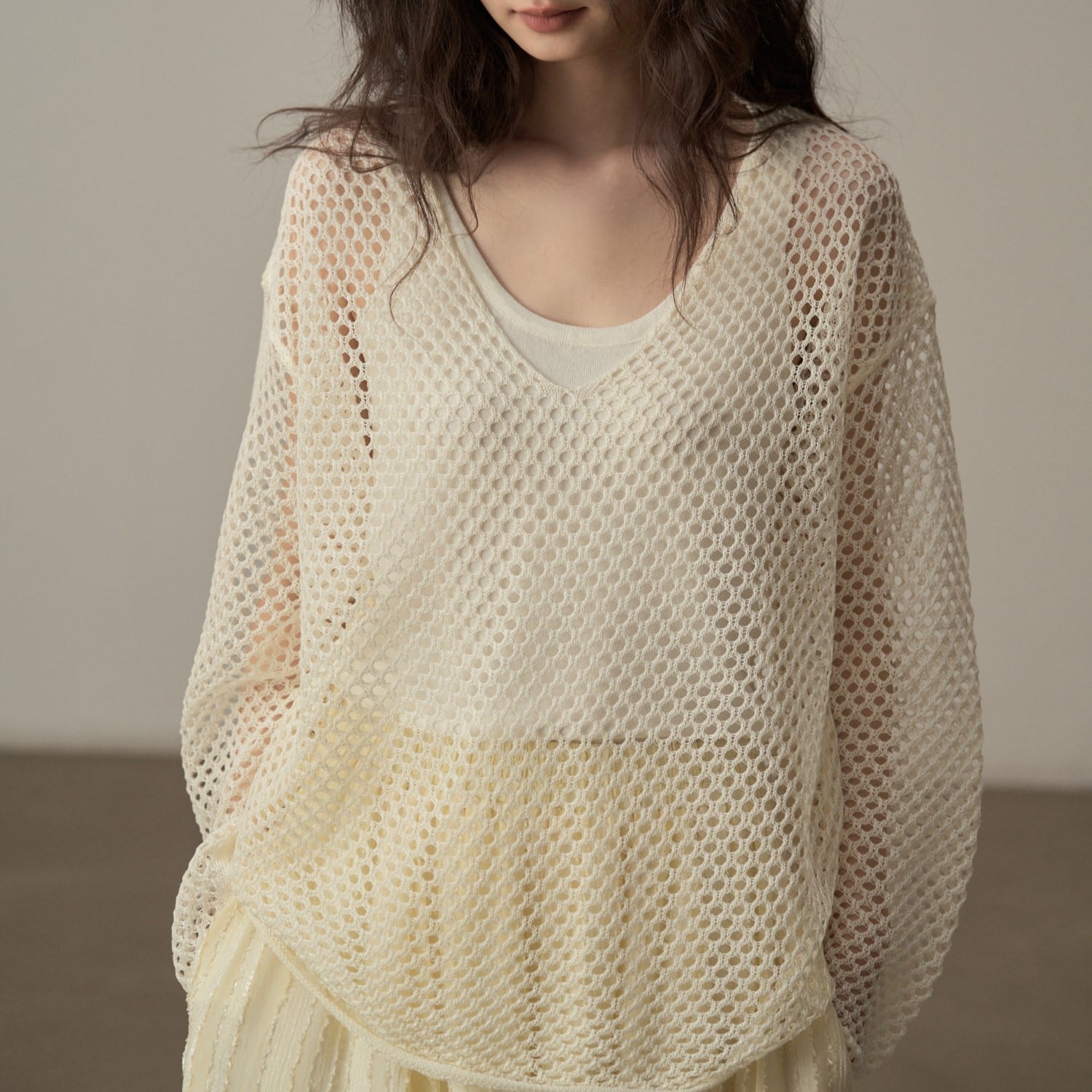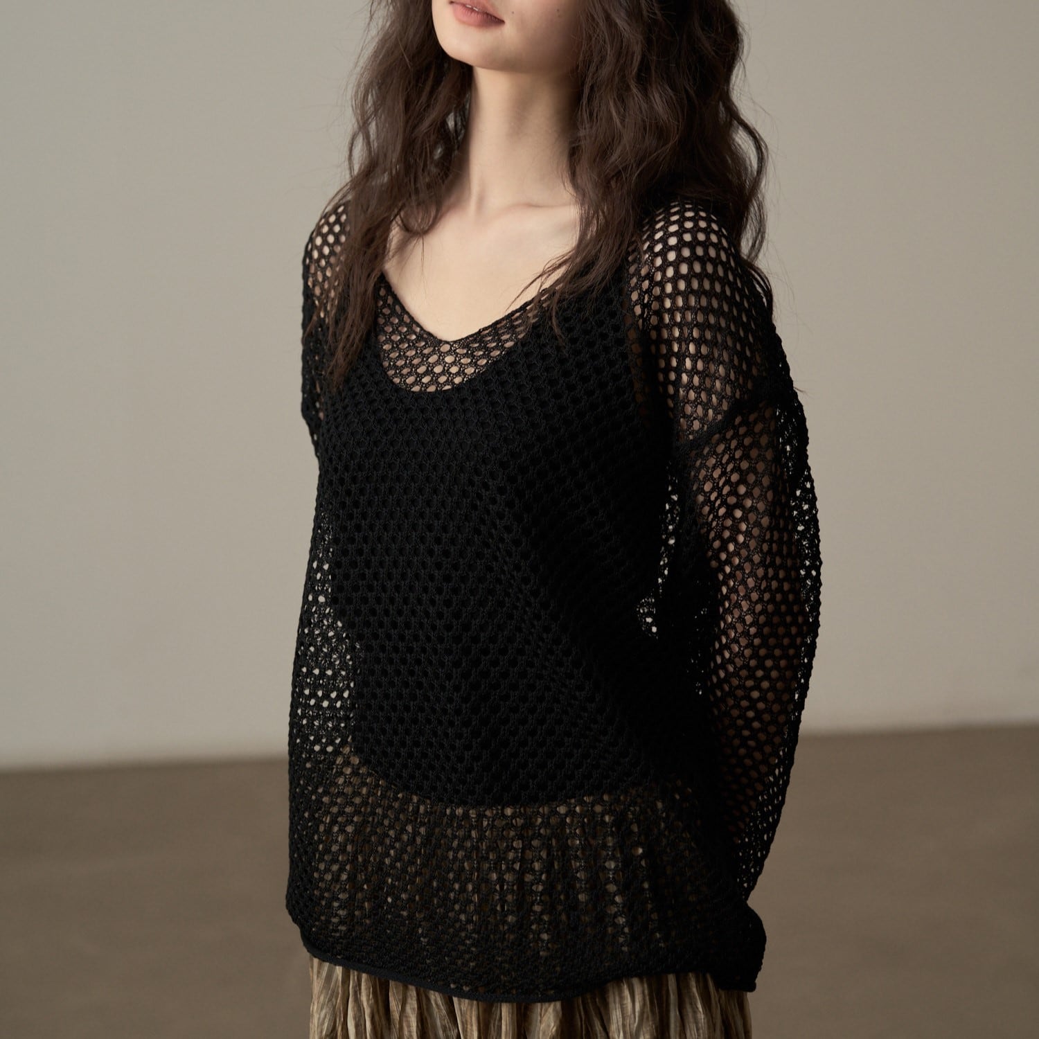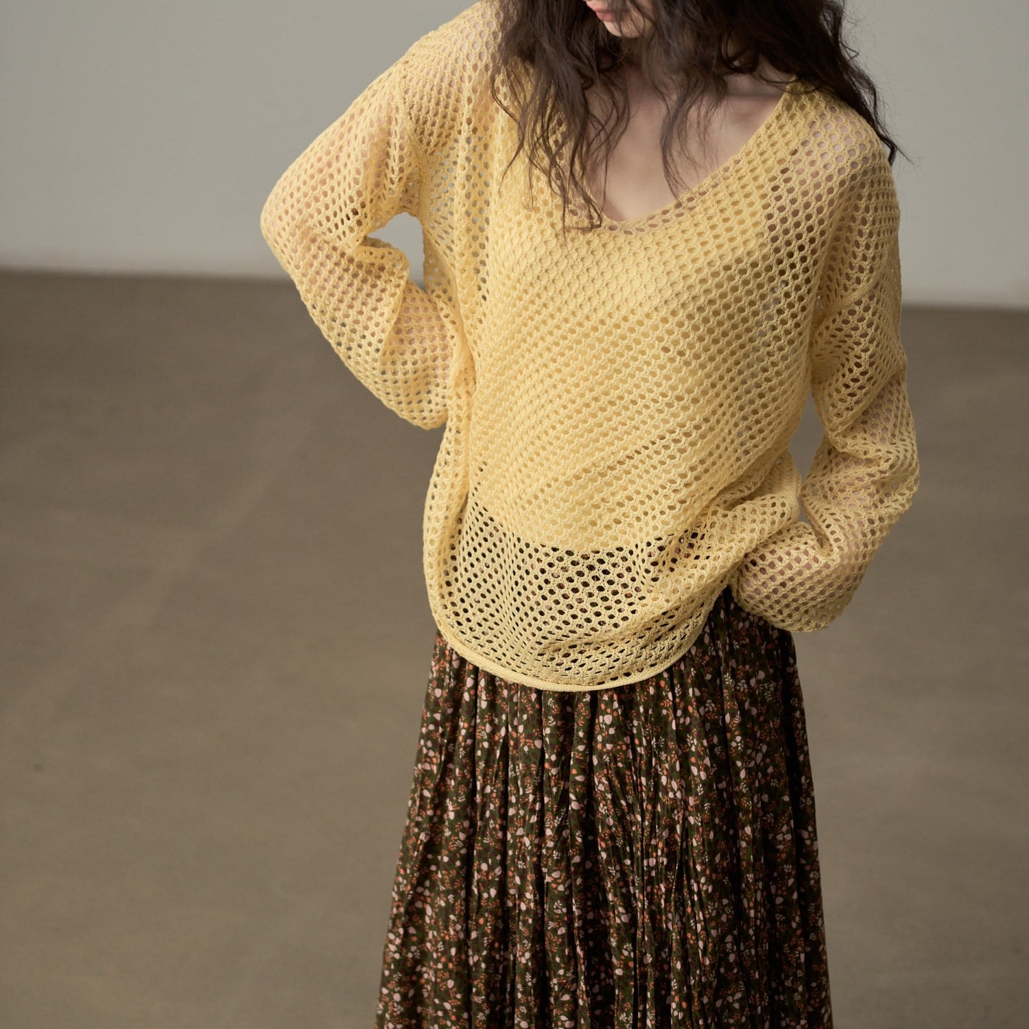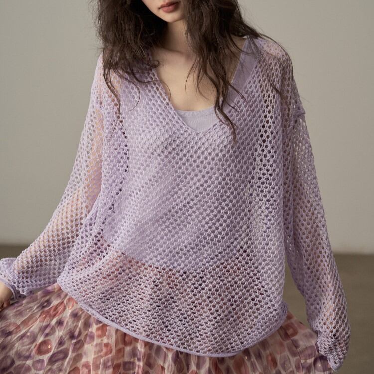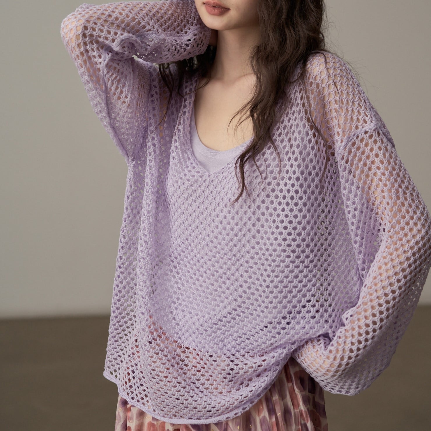 メッシュ編みの透け感が、抜け感を演出するトップス。 深めのVネックが、デコルテラインを美しく見せてくれる。 インナーの色を変えることで、様々な表情を楽しめる。 ※インナーは付属しておりません。 ■サイズ (cm) F / 肩幅:52 胸囲:108 着丈:61 袖丈:58 ※サイズ表記につき、約1~3cmの誤差がある場合がございます。 ■カラー イエロー パープル ホワイト ブラック ■素材 レーヨン ◼お届けについて ご決済から発送まで2~3週間前後のお時間をいただいております。 ◼注意事項 ・タイミングによっては 商品在庫切れにより、注文キャンセルとさせていただく恐れもございますので、予めご了承くださいませ。 ・こちらは輸入品となります。日本製とは検品基準が異なる為、新品未使用品でもごくわずかな汚れや、ほつれがある場合もございます。 ・仕入れ工場を変えることがあるため、記載サイズと若干異なる場合がございます。 ・商品の色味は、お手持ちのスマートフォンの画面によって実物と若干異なる場合がございます。 ・イメージ違いやサイズ交換等、お客さまご都合による交換、返品は対応出来かねます。 ———————————— ご注文前にご確認ください →https://official.lhery.com/about ————————————