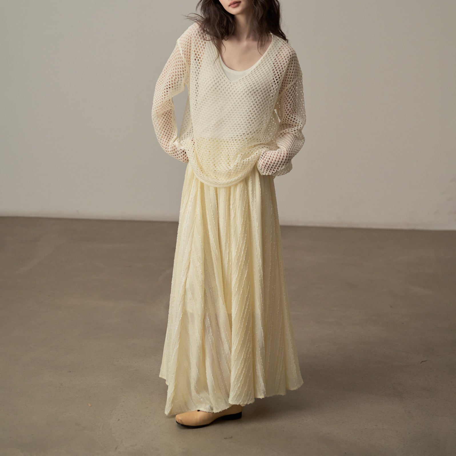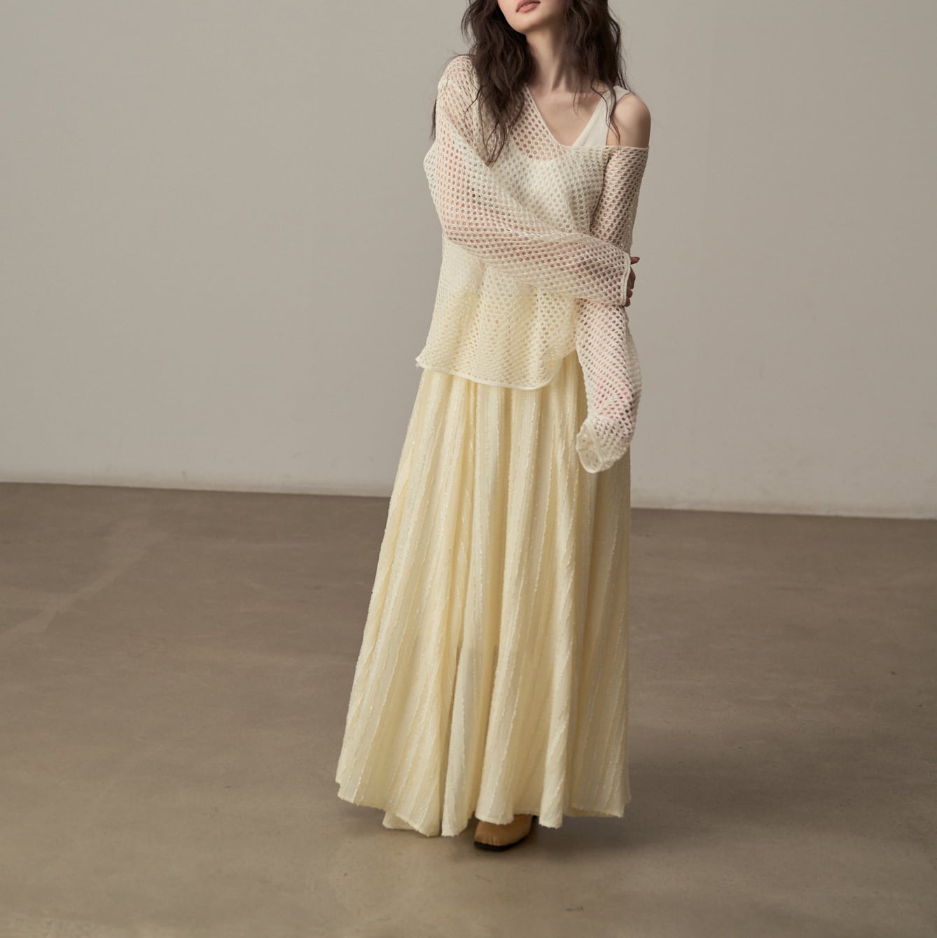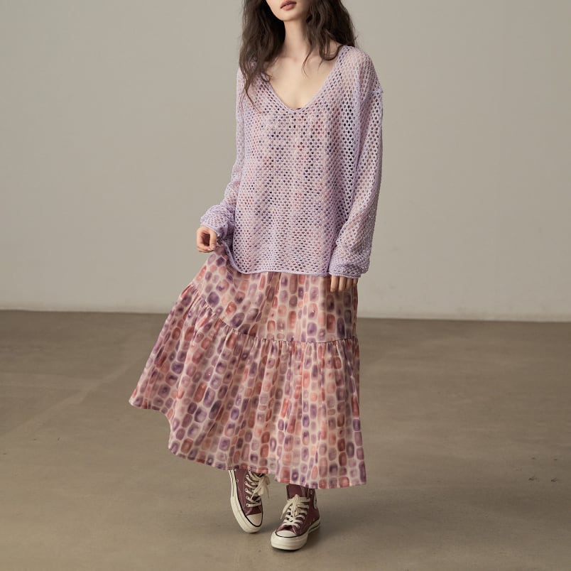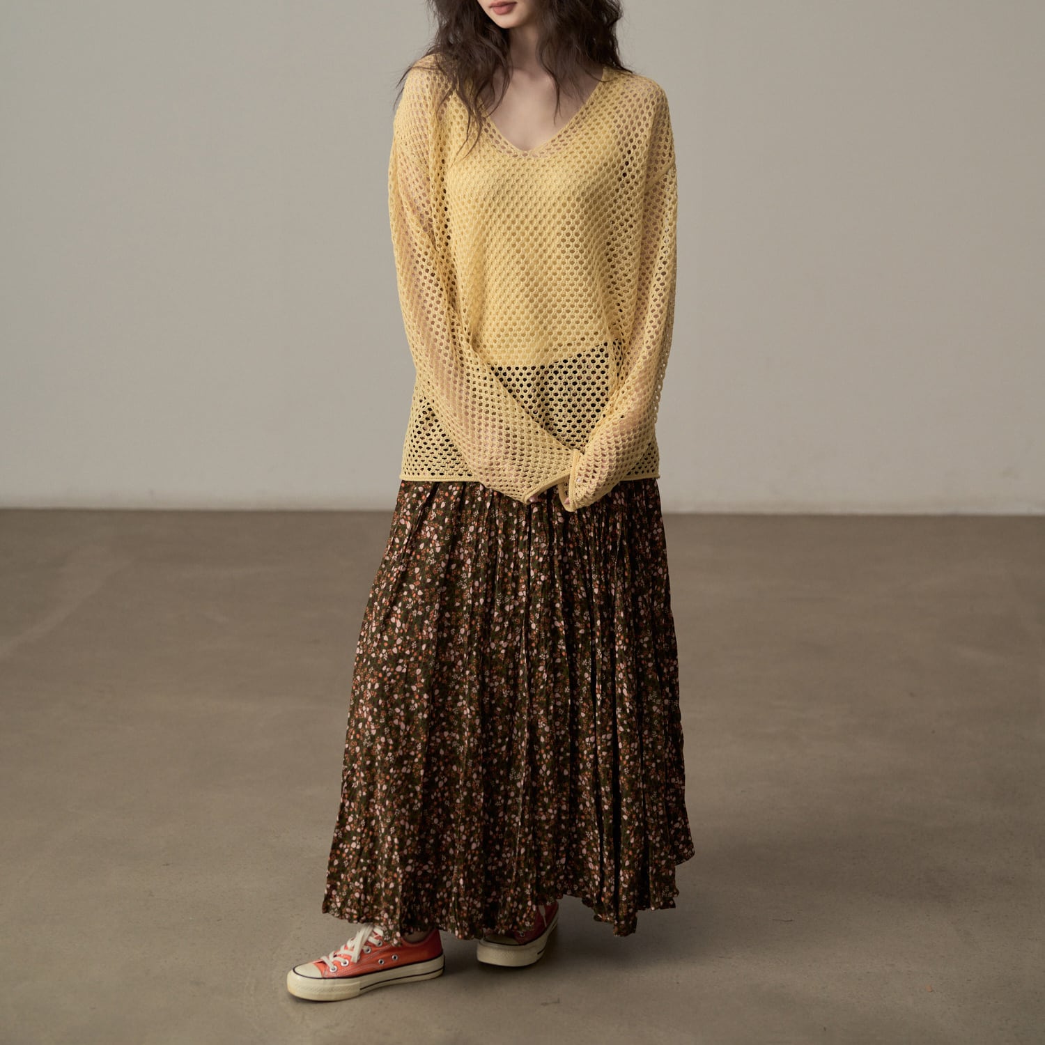 メッシュ編みの透け感が、抜け感を演出するトップス。 深めのVネックが、デコルテラインを美しく見せてくれる。 インナーの色を変えることで、様々な表情を楽しめる。 ※インナーは付属しておりません。 ■サイズ (cm) F / 肩幅:52 胸囲:108 着丈:61 袖丈:58 ※サイズ表記につき、約1~3cmの誤差がある場合がございます。 ■カラー イエロー パープル ホワイト ブラック ■素材 レーヨン ◼お届けについて ご決済から発送まで2~3週間前後のお時間をいただいております。 ◼注意事項 ・タイミングによっては 商品在庫切れにより、注文キャンセルとさせていただく恐れもございますので、予めご了承くださいませ。 ・こちらは輸入品となります。日本製とは検品基準が異なる為、新品未使用品でもごくわずかな汚れや、ほつれがある場合もございます。 ・仕入れ工場を変えることがあるため、記載サイズと若干異なる場合がございます。 ・商品の色味は、お手持ちのスマートフォンの画面によって実物と若干異なる場合がございます。 ・イメージ違いやサイズ交換等、お客さまご都合による交換、返品は対応出来かねます。 ———————————— ご注文前にご確認ください →https://official.lhery.com/about ————————————