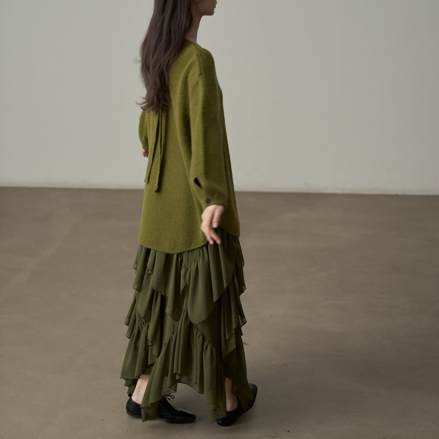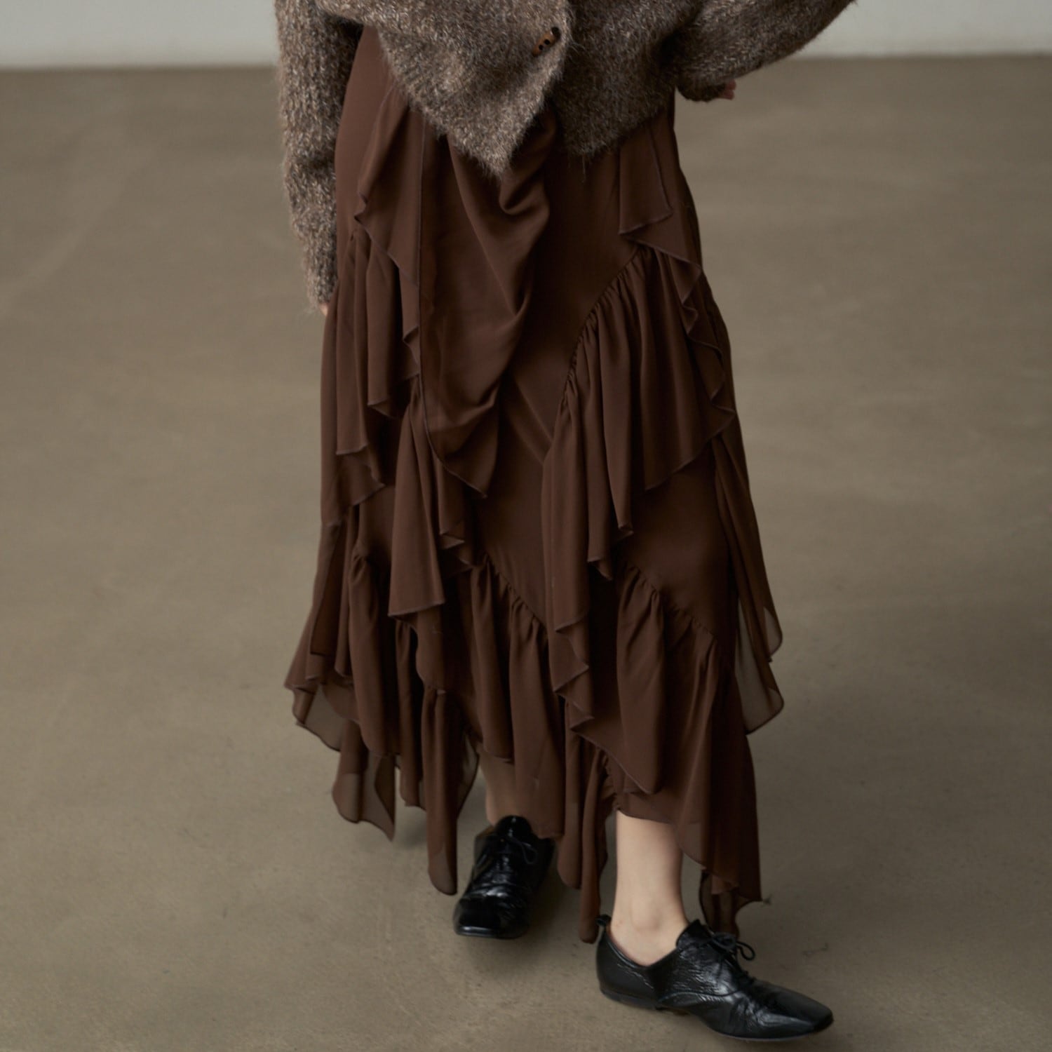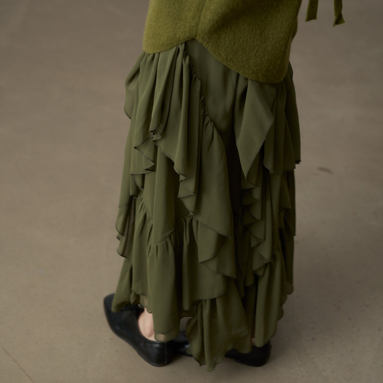 歩くたびに揺れるフリルが、エレガントな雰囲気を演出。